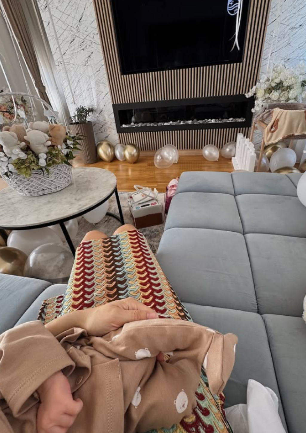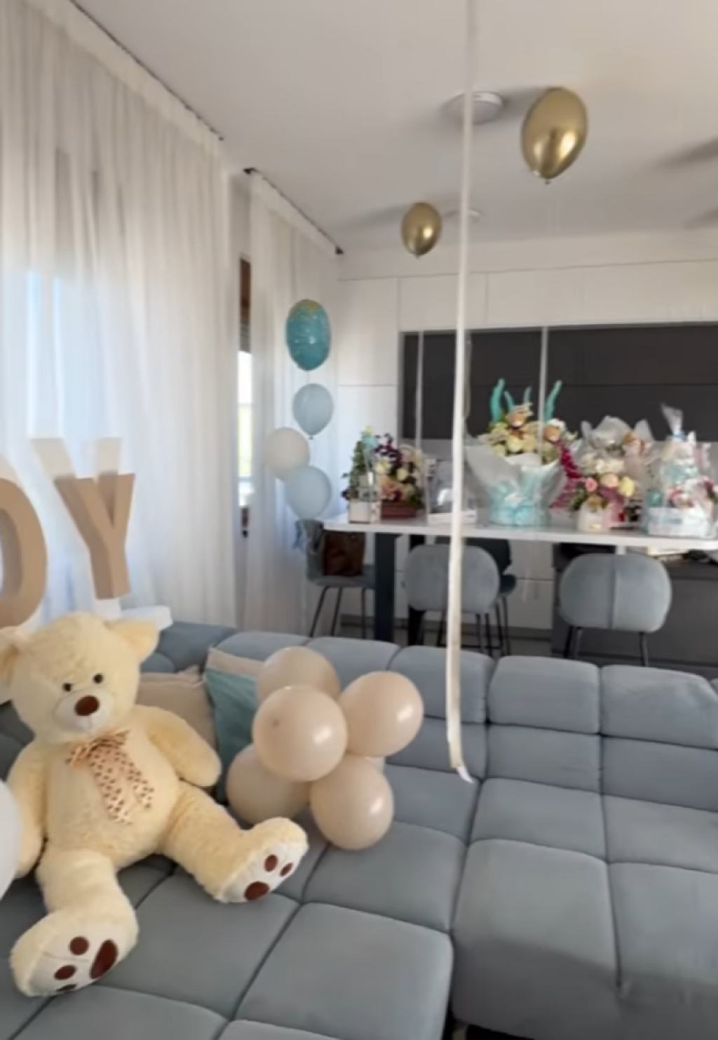 Ponosni tata je vodio računa o svakom detalju i potrudio se da pripremi pravi mali ugođaj za Tamaru i Rajana. U stanu je bilo mnoštvo belih i zlatnih balona, koji su stajali u hodniku, ali i dnevnom boravku. Pored toga, cela dnevna soba je bila ispunjena buketima cveća, a na stolovima su stajale korpice sa medvedićima unutra.