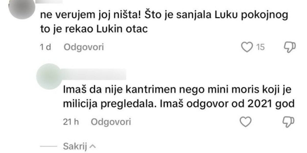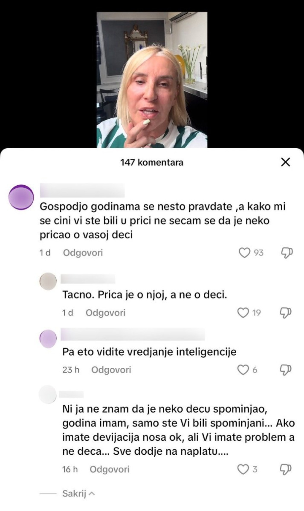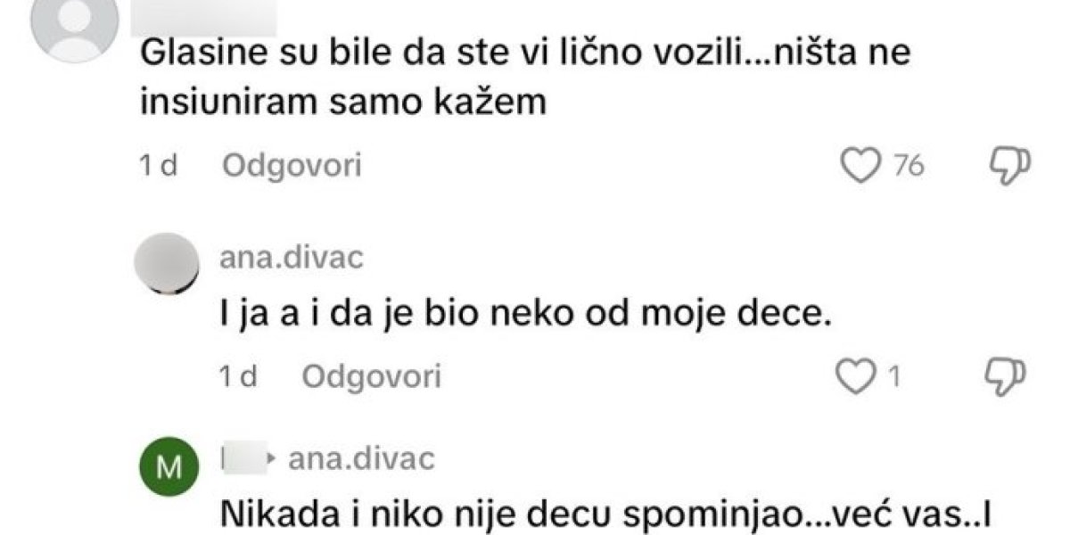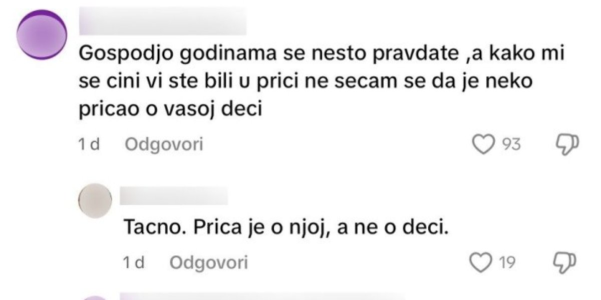 Međutim, ispod njenog videa su se samo nizali komentari, a ljudi su pisali da je ipak ona kriva i da niko nije njenu decu spominjao, ni u jednom trenutku.
