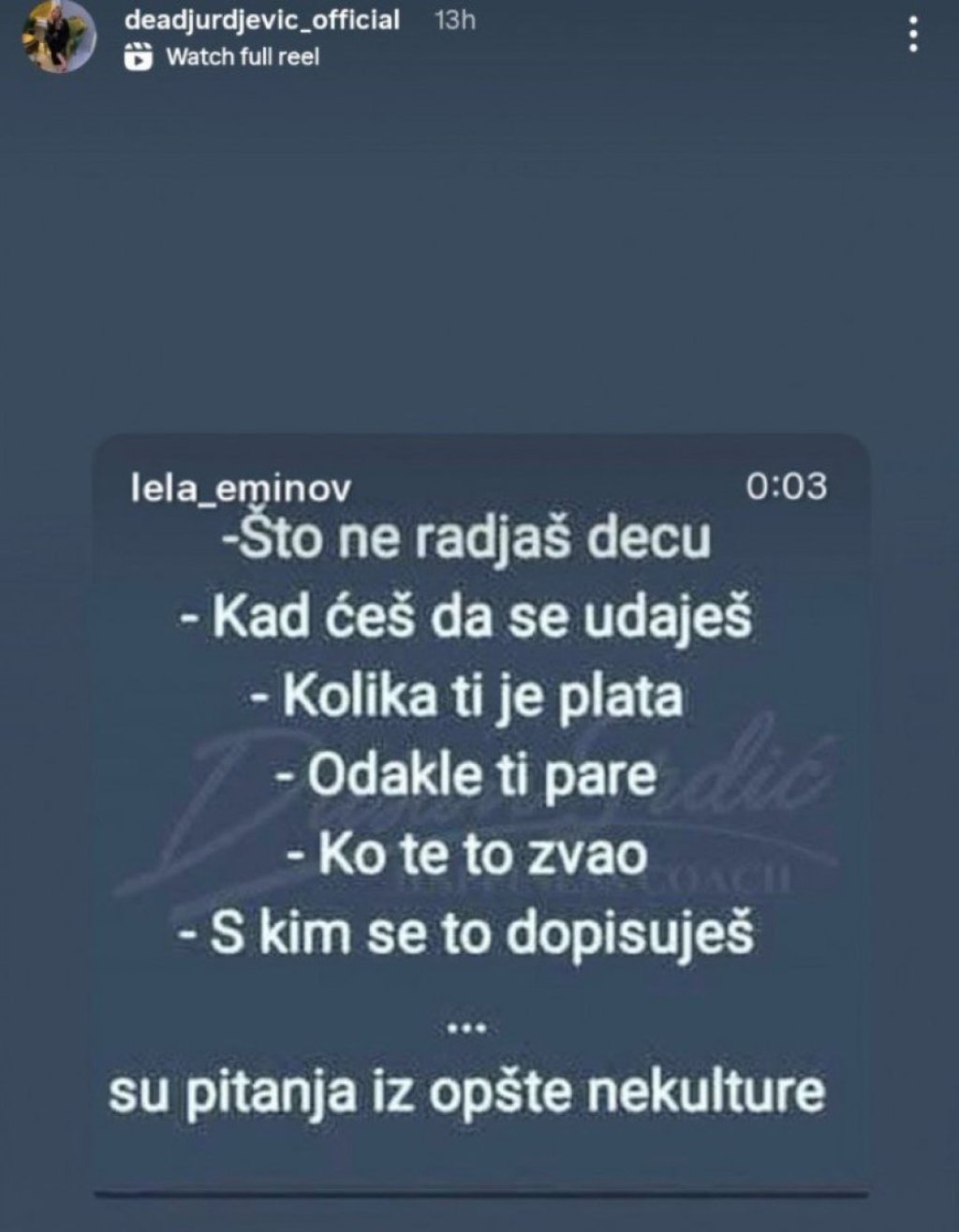 Pitanja zbog čega se nije ostvarila u ulozi majke, kada će se udati i kolika joj je plata Dea Đurđević smatra krajnje nepristojnim što pokazuje i njena najnovija objava na Instagramu.