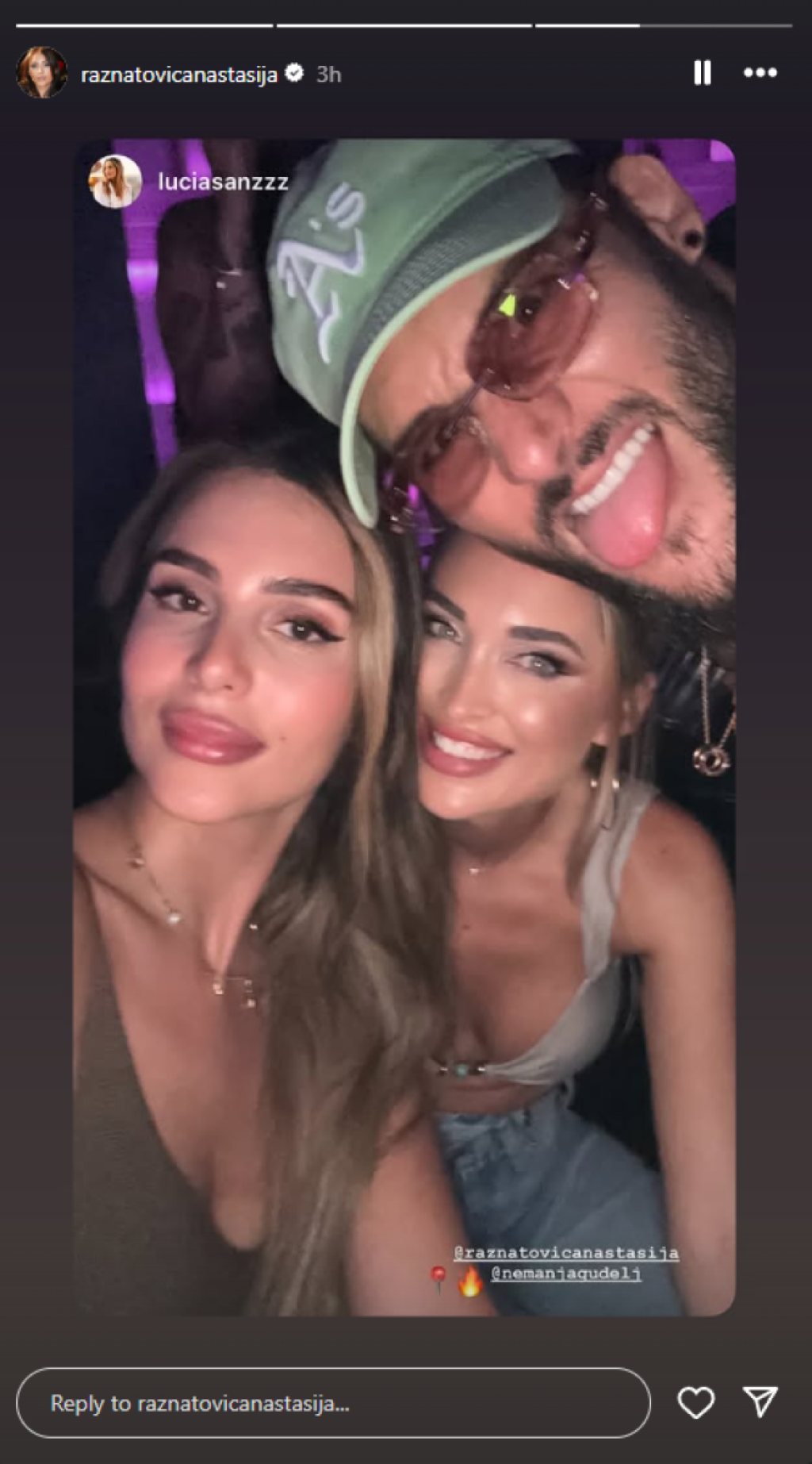 Fotografije sa odmora svakodnevno dele na društvenim mrežama, a poslednja u nizu privukla je nezapamćenu pažnju javnosti. Naime, Anastasija i Nemanja Gudelj povodili su se u društvu atraktivne plavuše koja je, kada su rešili da se fotografišu, sa osmehom na licu stala između njih. Lucia Sanz je, sudeći po fotografijama, bliska prijateljica i sa Nemanjinom sestrom Vanjom koja joj neretko komentariše slike na Instagramu.