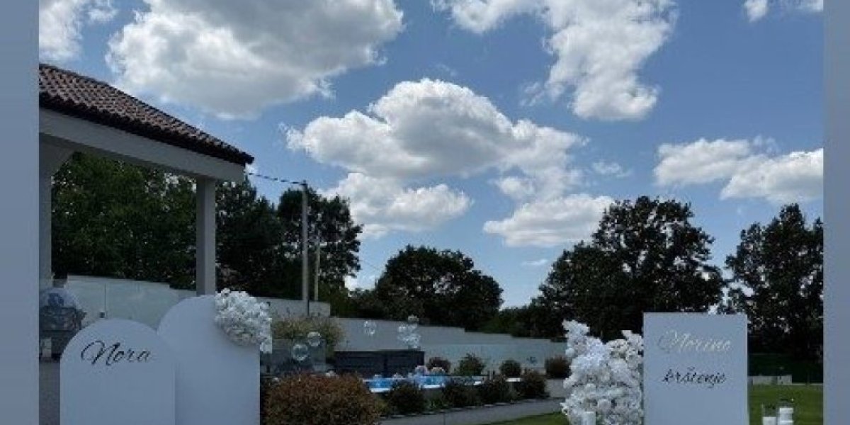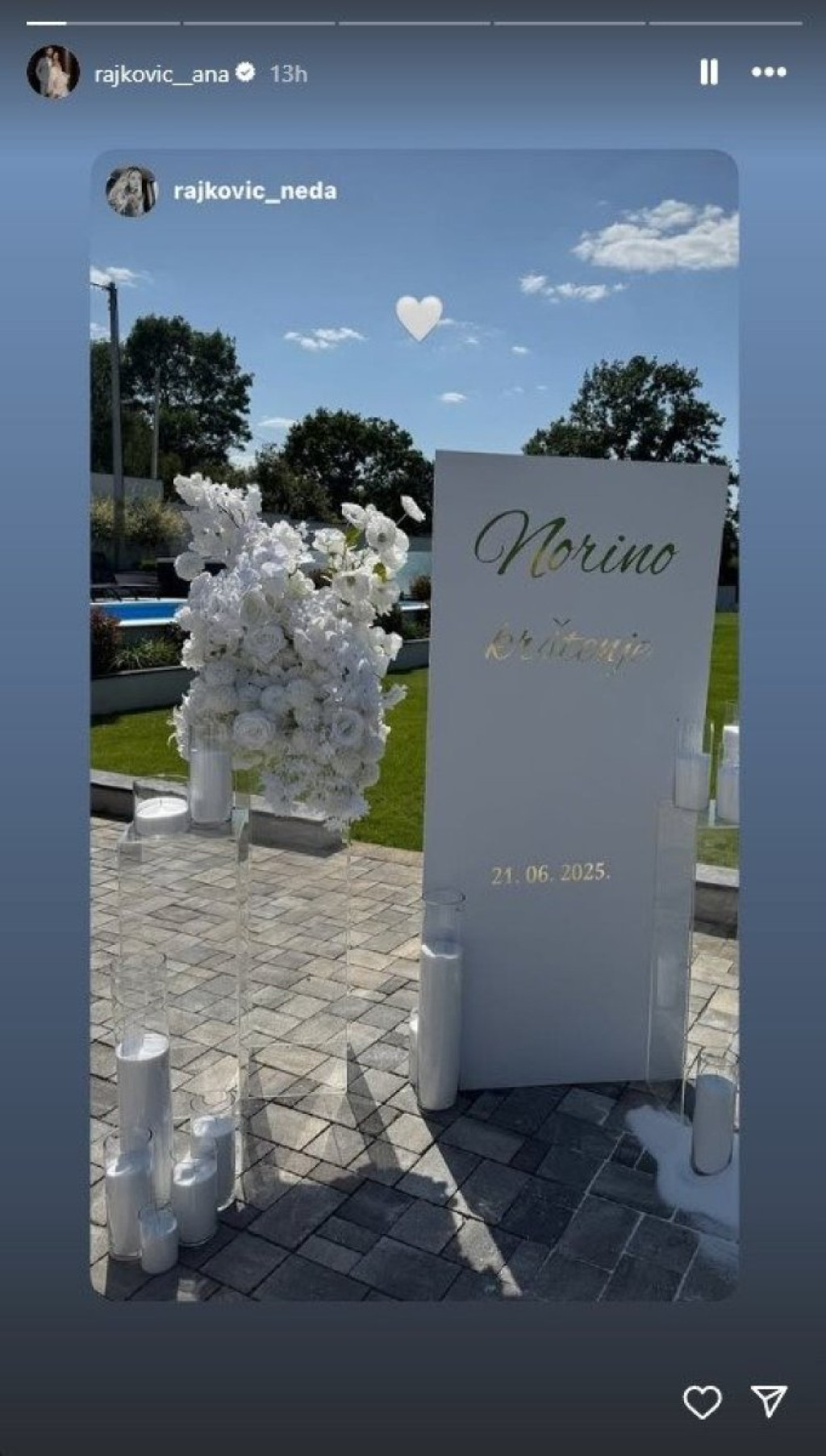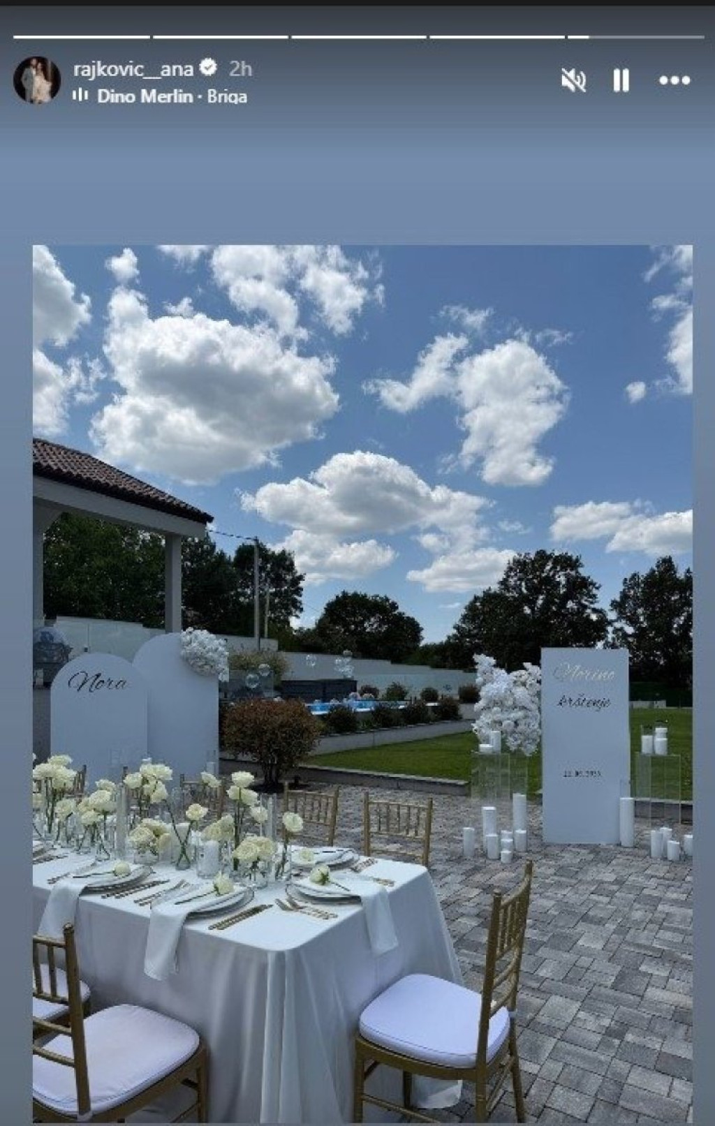 Ana i Predrag slavlje su upriličili u dvorištu velelepne vikendice, za koju su svojevremeno iskeširali čak 270.000 evra. Celokupna dekoracija bila je u beloj boji, koja simbolizuje čistoću, nevinost i iskrenost, a dominirali su cvetni aranžmani od belih ruža. Zlatni detalji prostoru su dali notu elegancije, koja pristaje ovom svečanom činu.