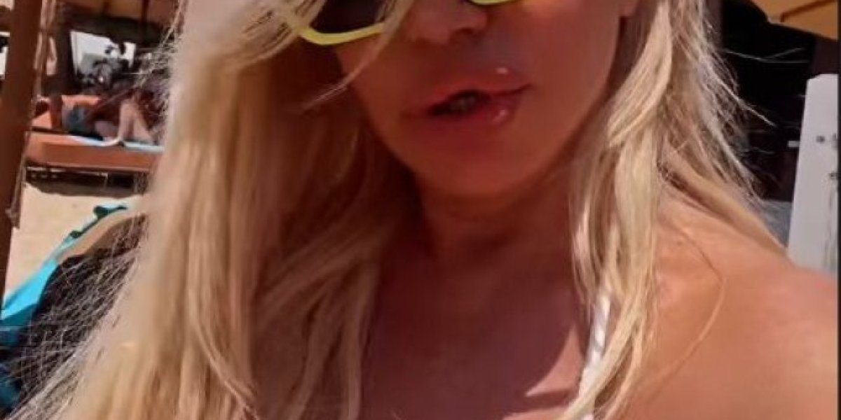 Na sebi je imala beli minijaturni bikini koji je jedva prekrio njene grudi. Dari društvo u Grčkoj pravi frizer Zoran Sekički koji godinama brine o njenoj dugoj plavoj kosi.