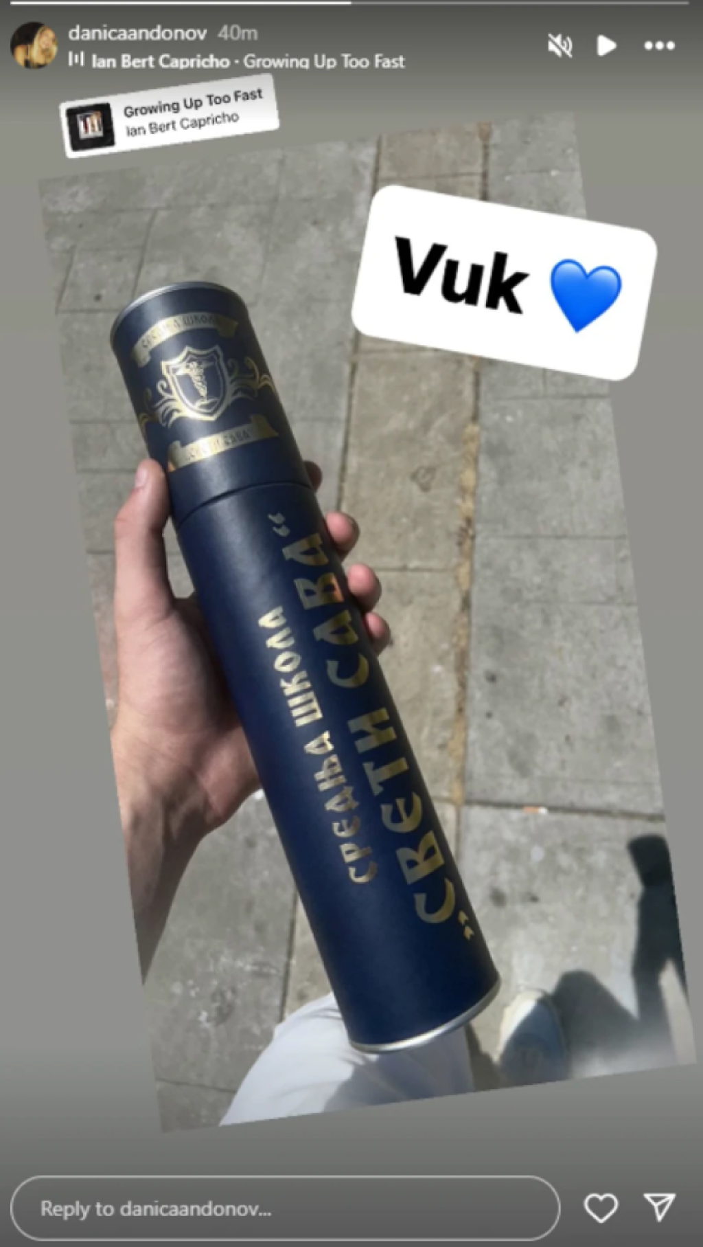 Gruov sin Vuk završio je srednju školu, a ponosna mama je fotografiju diplome podelila na svom Instagram profilu uz pesmu "Growing up too fast" (Prebrzo rasteš).