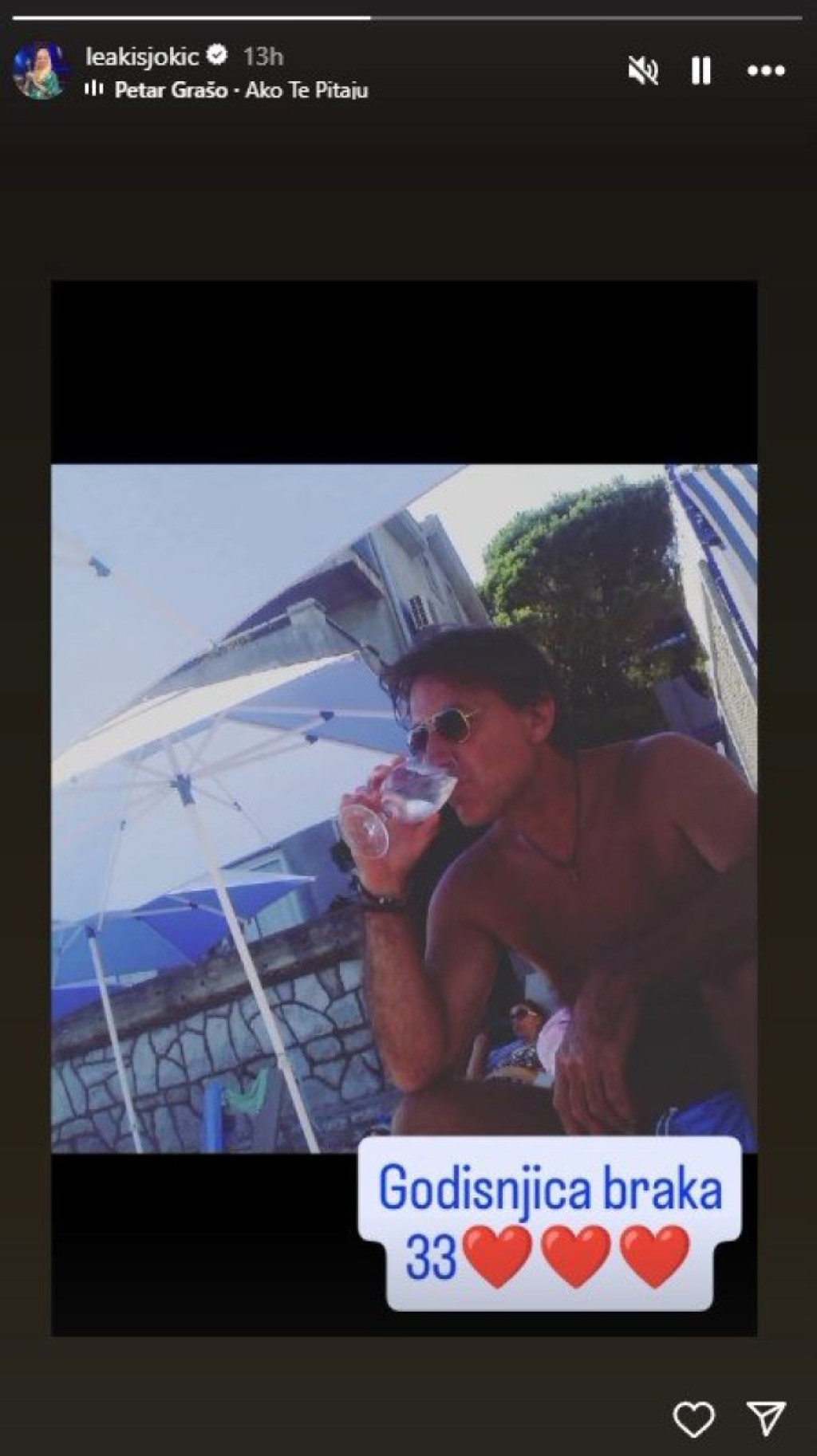 - Godišnjica braka. 33 - napisala je voditeljka koja je uz fotografije dodala jednu od najlepših ljubavnih pesama ''Ako te pitaju'' koju izvodi Petar Grašo.