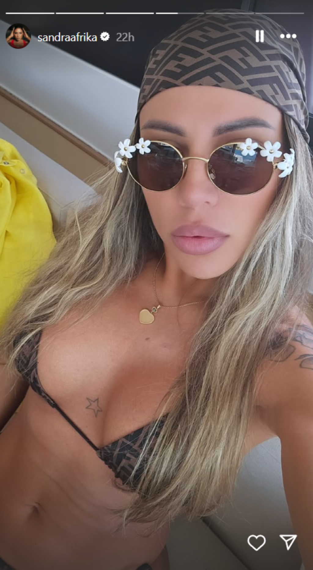 Ovoga puta Sandra je pozirala u dvodelnom bikiniju crno-braon boje, koji je u prvi plan stavio njene bujne obline i zategnut stomak.