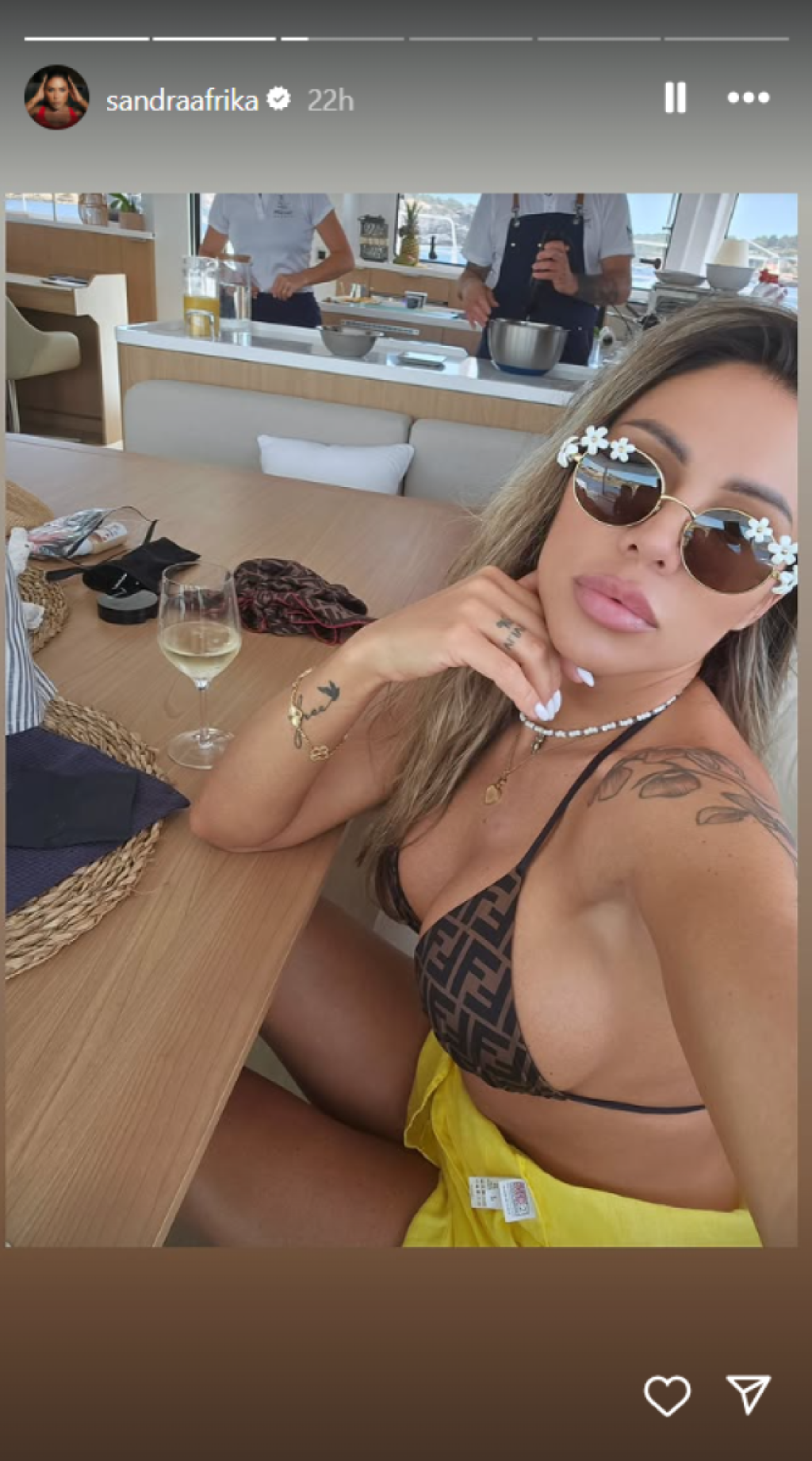 S obzirom na to da je letnja sezona u punom jeku, Sandra je iskoristila redak slobodan trenutak kako bi se na jahti osvežila čašom belog vina.