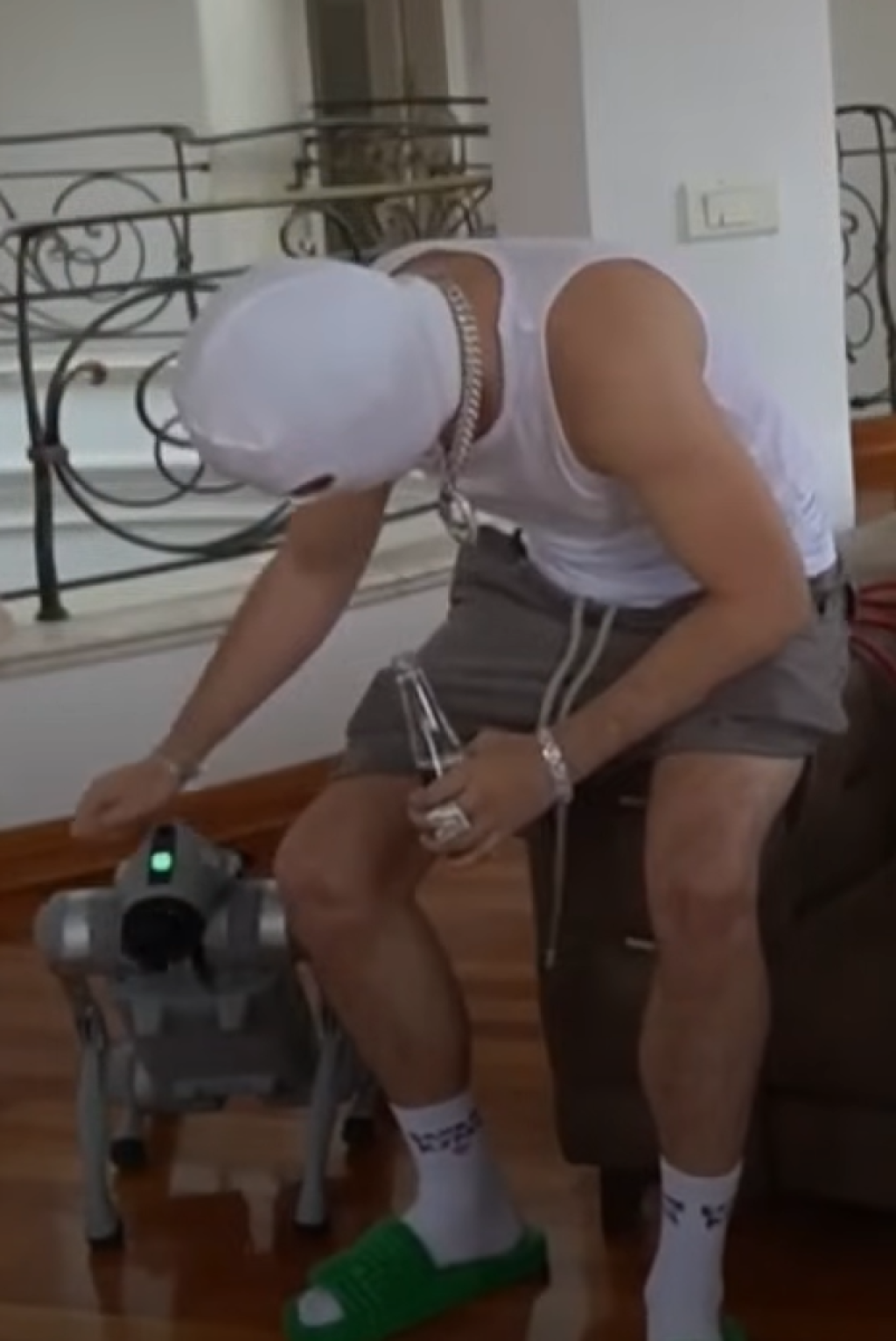 - Da li si upoznao Kerita? To je moj pas. Znaš li kako je dresiran, naučio sam ga da igra na moje pesme - objasnio je reper, a zatim pokazao šta njegov ljubimac zna. Na komandu, robot je pokazao srce, a zatim i skočio.