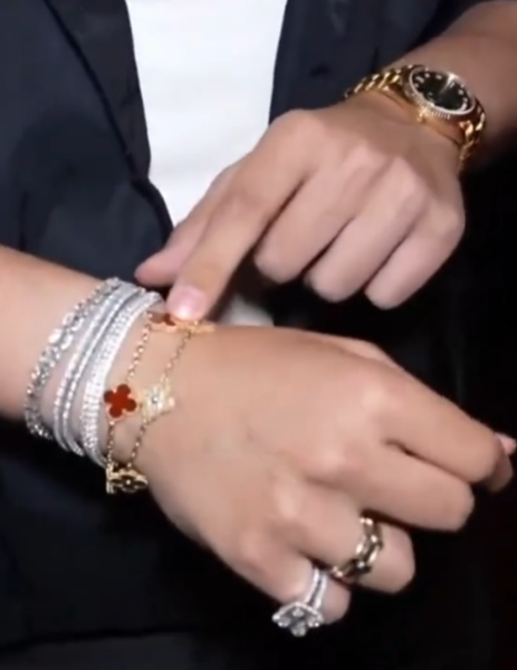 - Sat sa dijamantima unutra, nov, mislim da sam ga platio 50.000 evra. Zatim imamo tri narukvice, jedna je bila 15.000 evra, druga 11.000 evra, treća 15.000 evra. Imam i dve "Van Cleef" narukvice, sad ne sećam se koliko je bilo, jedna je bila između 4.000 i 6.000 evra, a druga je bila između 15.000 i 17.000 evra, obe sam ih kupio u Parizu. Prsten jedan je bio 15.000 evra, drugi 2.500 evra. Lanac koji nosim sam platio 70.000 evra, a ovaj obični krstić koji nosim se ne sećam koliko je bio - rekao je Vojaž, pa otkrio da ovaj skupoceni nakit ne nosi svakodmevno: