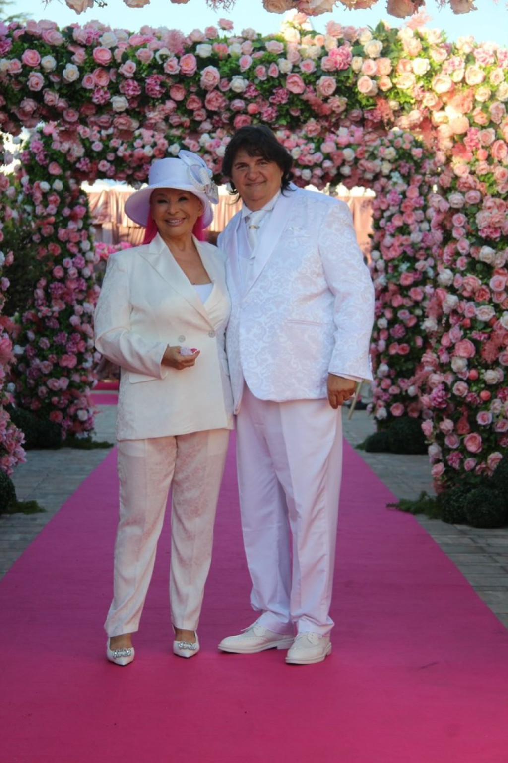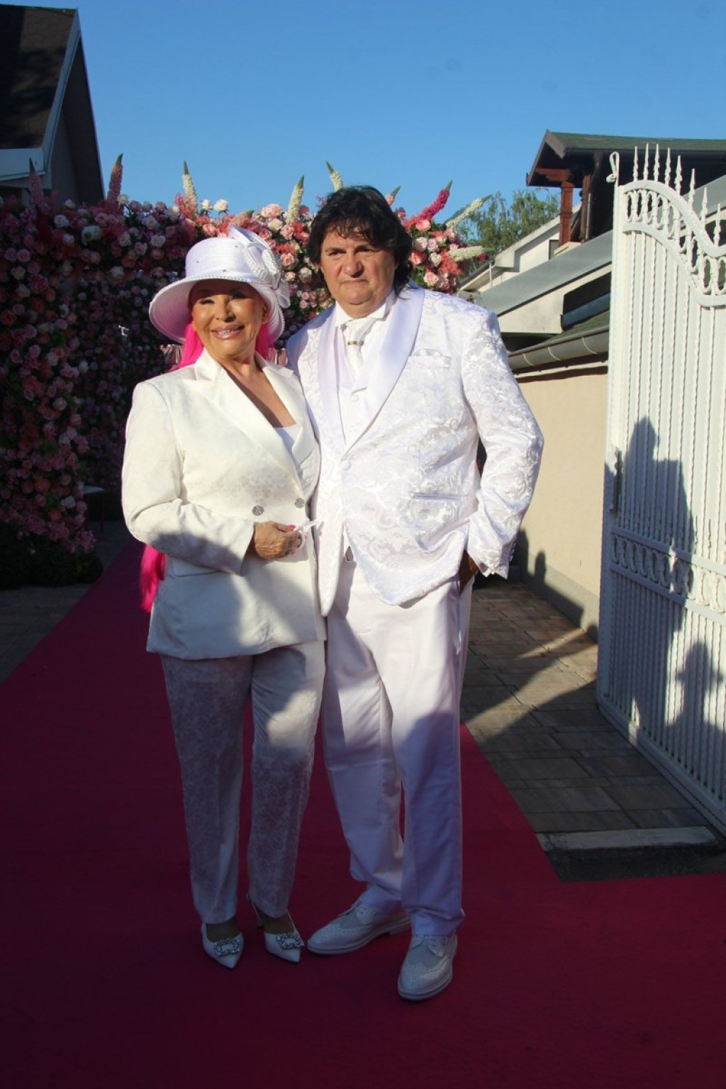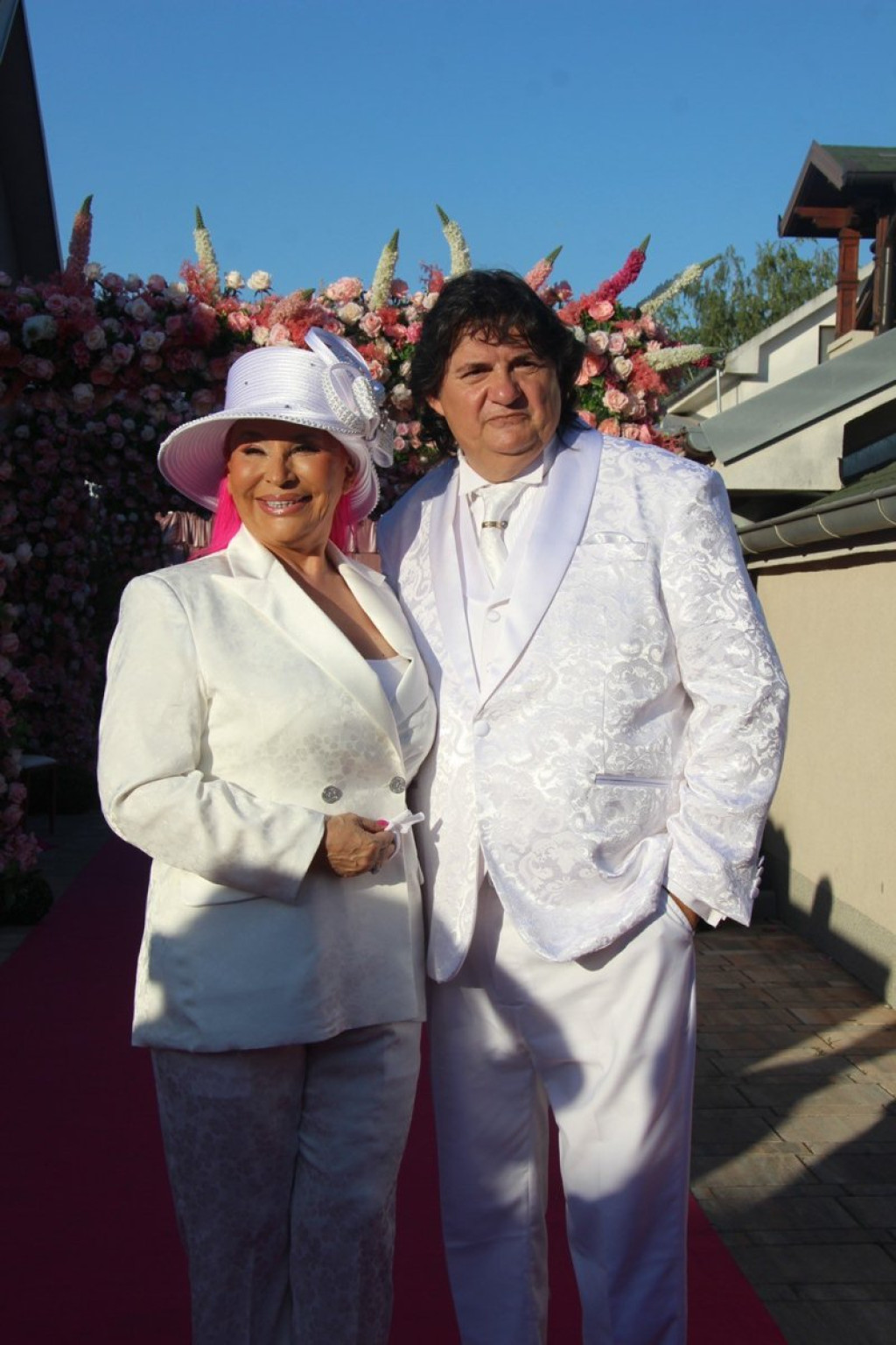 Zorica Brunclik i Miroljub Aranđelović Kemiš pozirali su ispred doma u Krnjači na dan svadbenog slavlja koje su organizovali povodom godišnjice ljubavi i zajedničkog života.