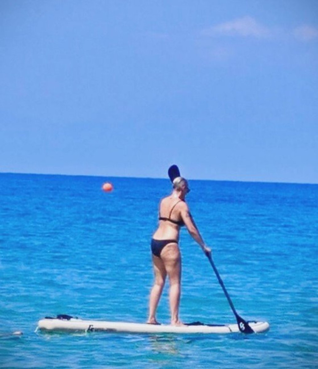 Ona je ponosno obukla bikini i surfovala po vodi, dok su joj društvo pravili suprug Milan i sin Vuk.