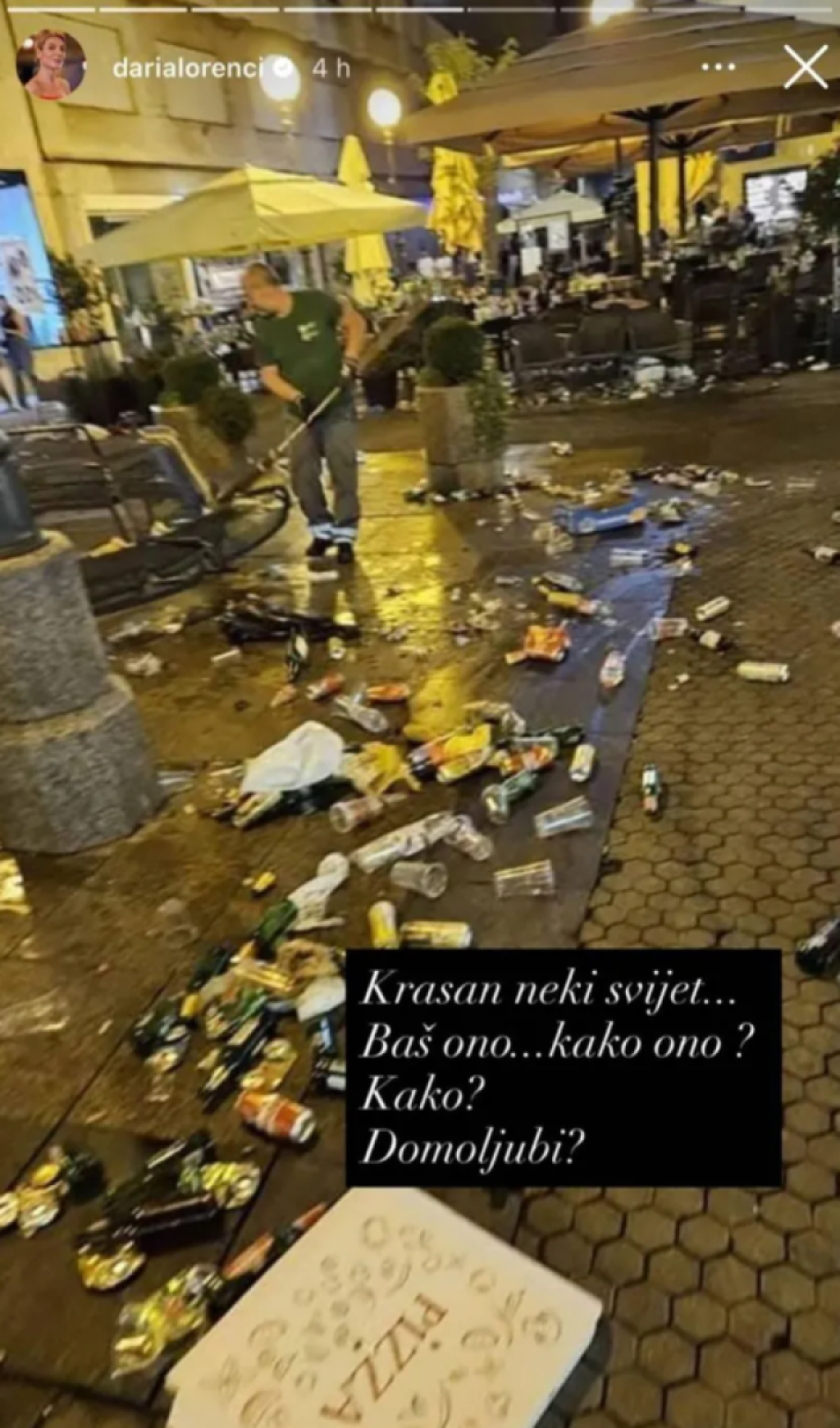 Slika Zagreba nakon koncerta ekstremiste Marka Perkovića Tompsona je poražavajuća, zbog čega je putem društvene mreže Instagram reagovala glumica Daria Lorenci.