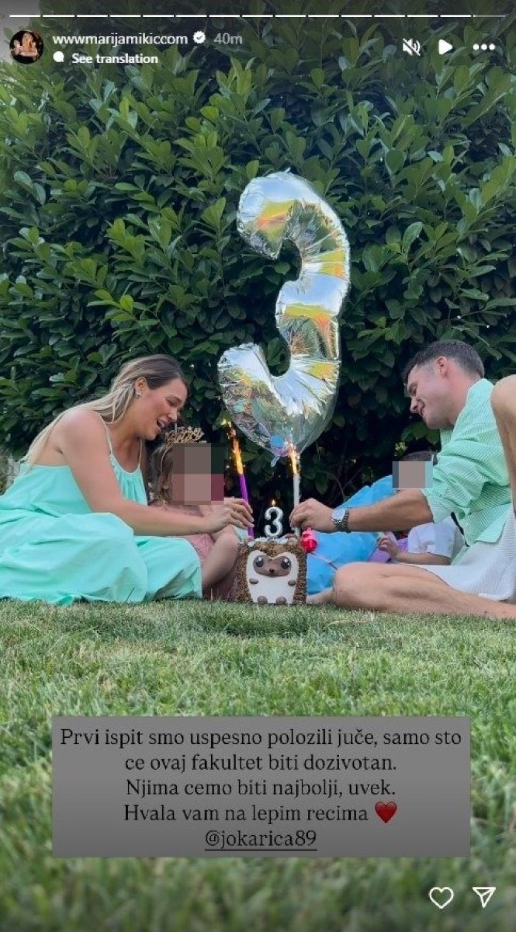 Marija Mikić i njen bivši suprug Jovan Pantić juče su zajedno proslavili treći rođendan ćerki Đurđi, a ona je na Instagramu podelila sliku sa proslave na kojoj je porodica na okupu i konstatovala da su prvi ispit uspešno položili.