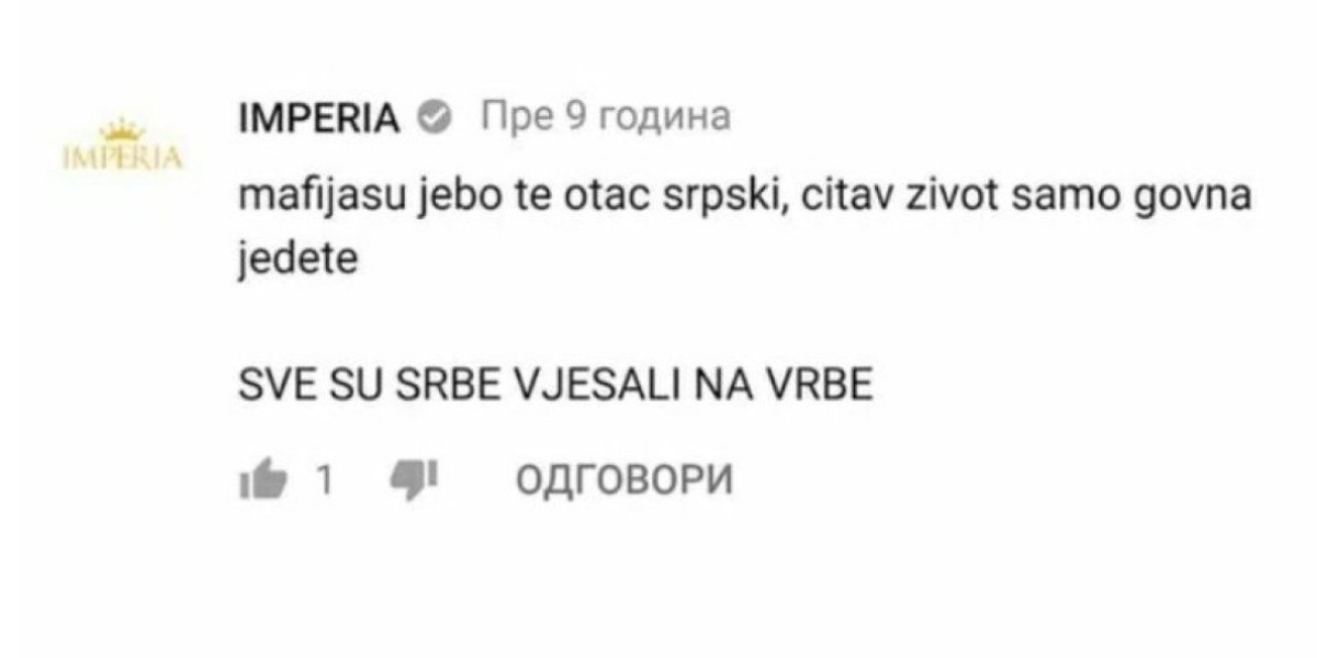 Jala i Buba su pre nekoliko godina, putem Jutjub naloga svoje izdavačke kuće "Imperija", pozivali na linč Srba. Tada su odgovorili na jedan komentar: "Mafijašu, jebo te otac srpski, čitav život samo govna jedete. Sve su SRBE vešali na vrbe".