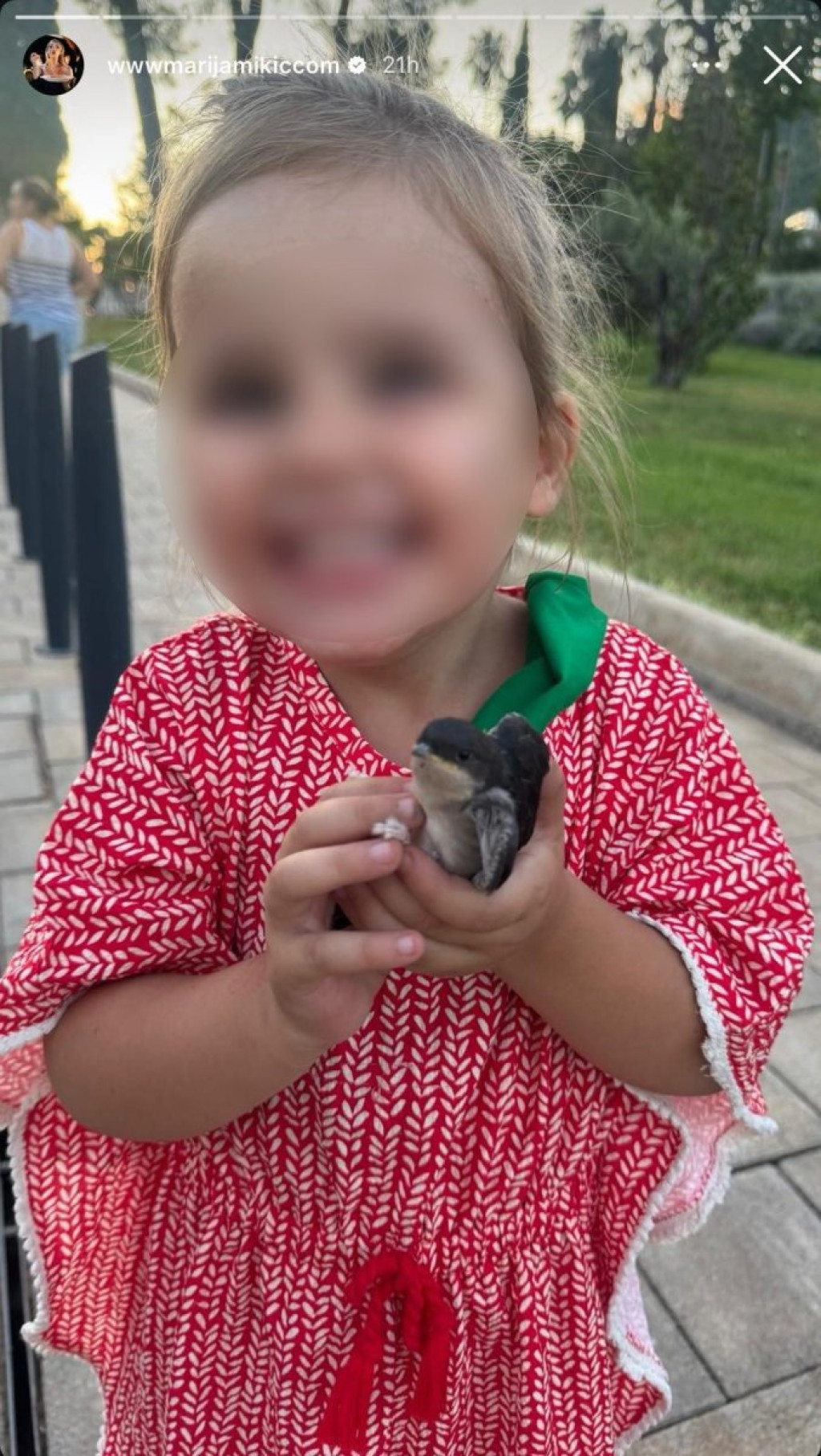 Ona je sada podelila presladak video. Naime, na rame joj je sletela ptičica za koju su mislili da se povredila, a u stvari se desilo nešto mnogo lepše.
