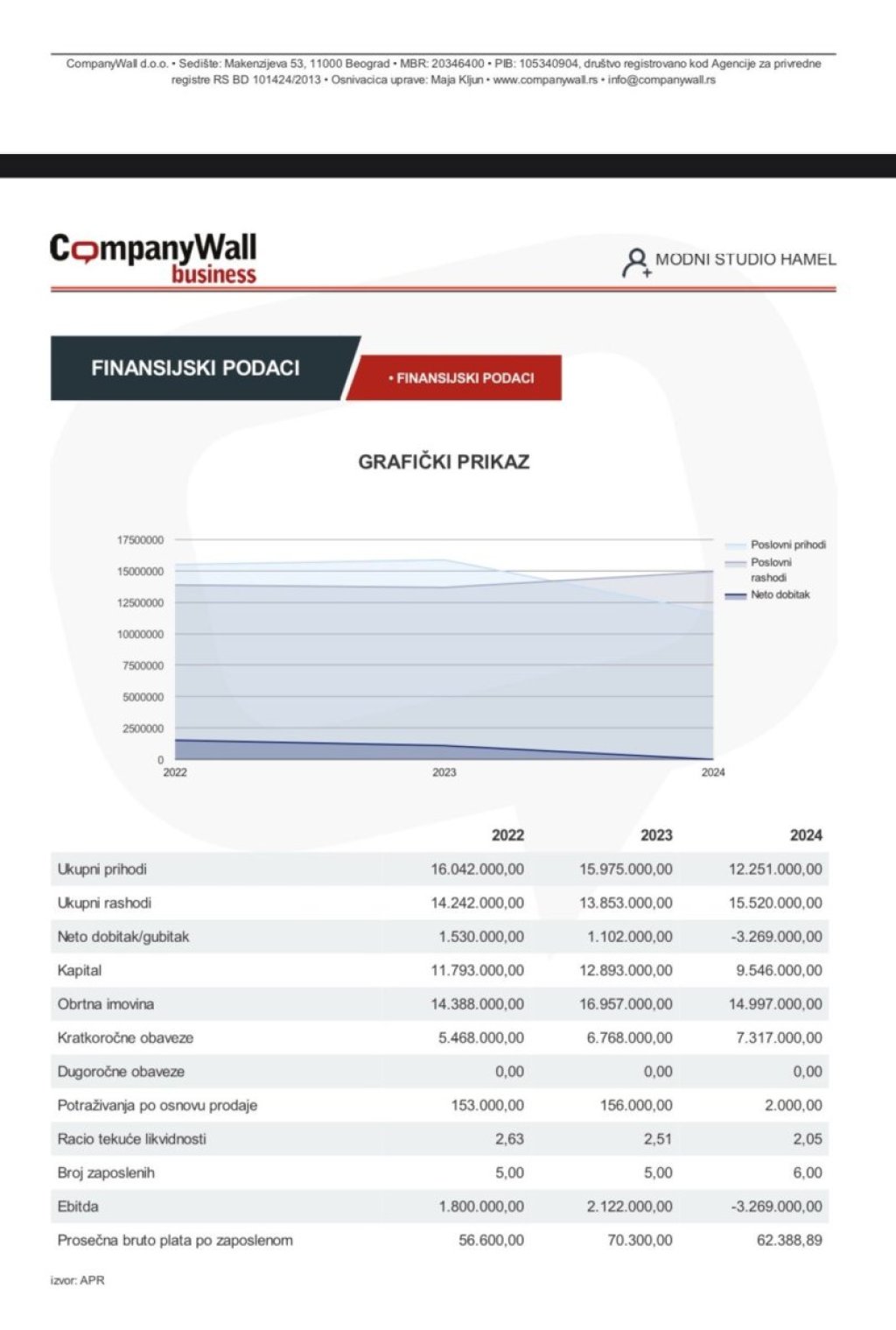 Brend Meline Džinović, dizajnerke luksuznih haljina, u 2024. godini beleži najveći finansijski minus do sada - čak tri miliona i 269 hiljada dinara, pokazuju zvanični podaci dostupni na Agenciji za privredne registre.