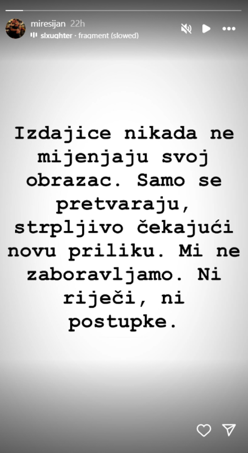 "Izdajice nikada ne menjaju svoj obrazac. Samo se pretvaraju, strpljivo čekajući novu priliku. Mi ne zaboravljamo. Ni reči, ni postupke", napisao je Šijan.