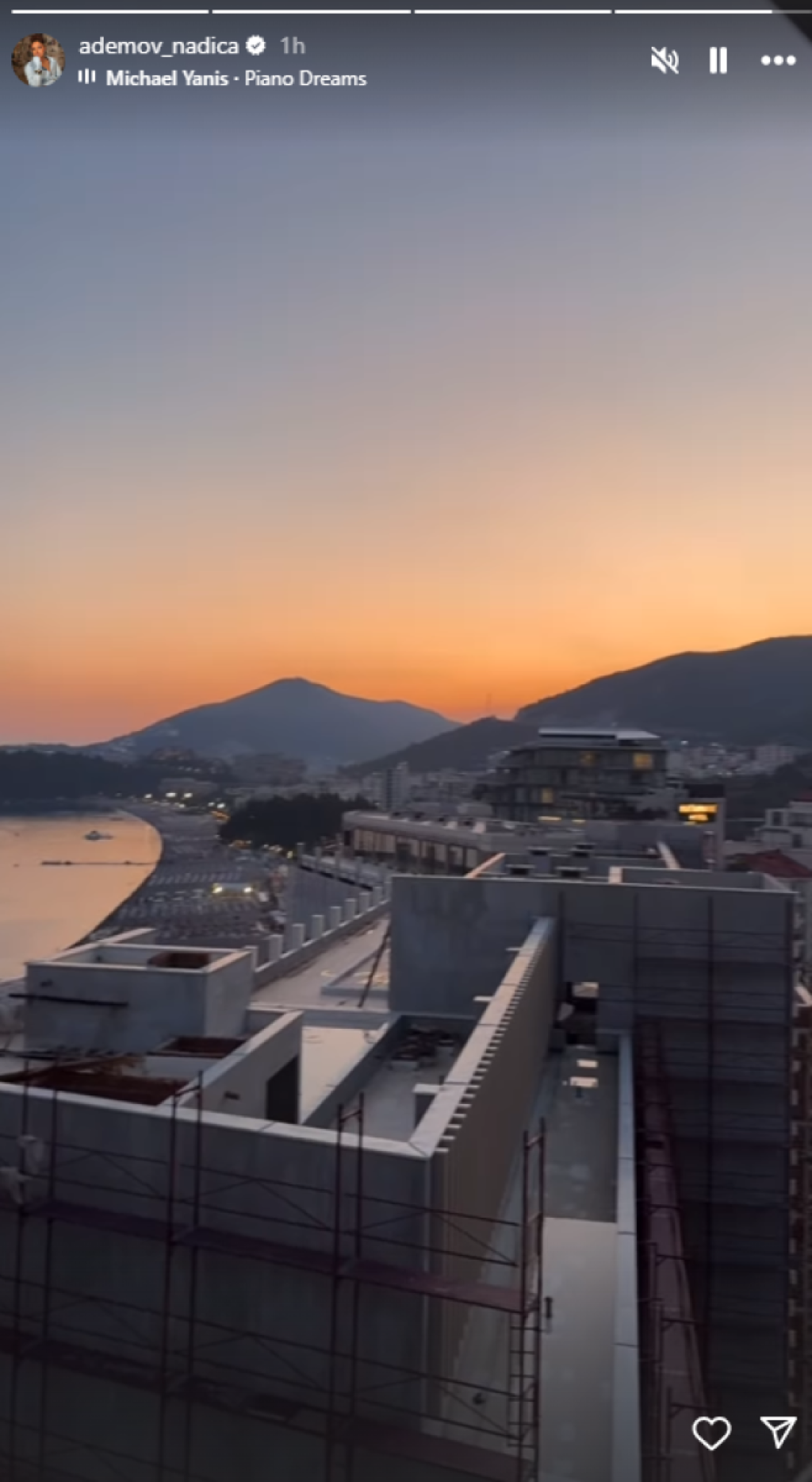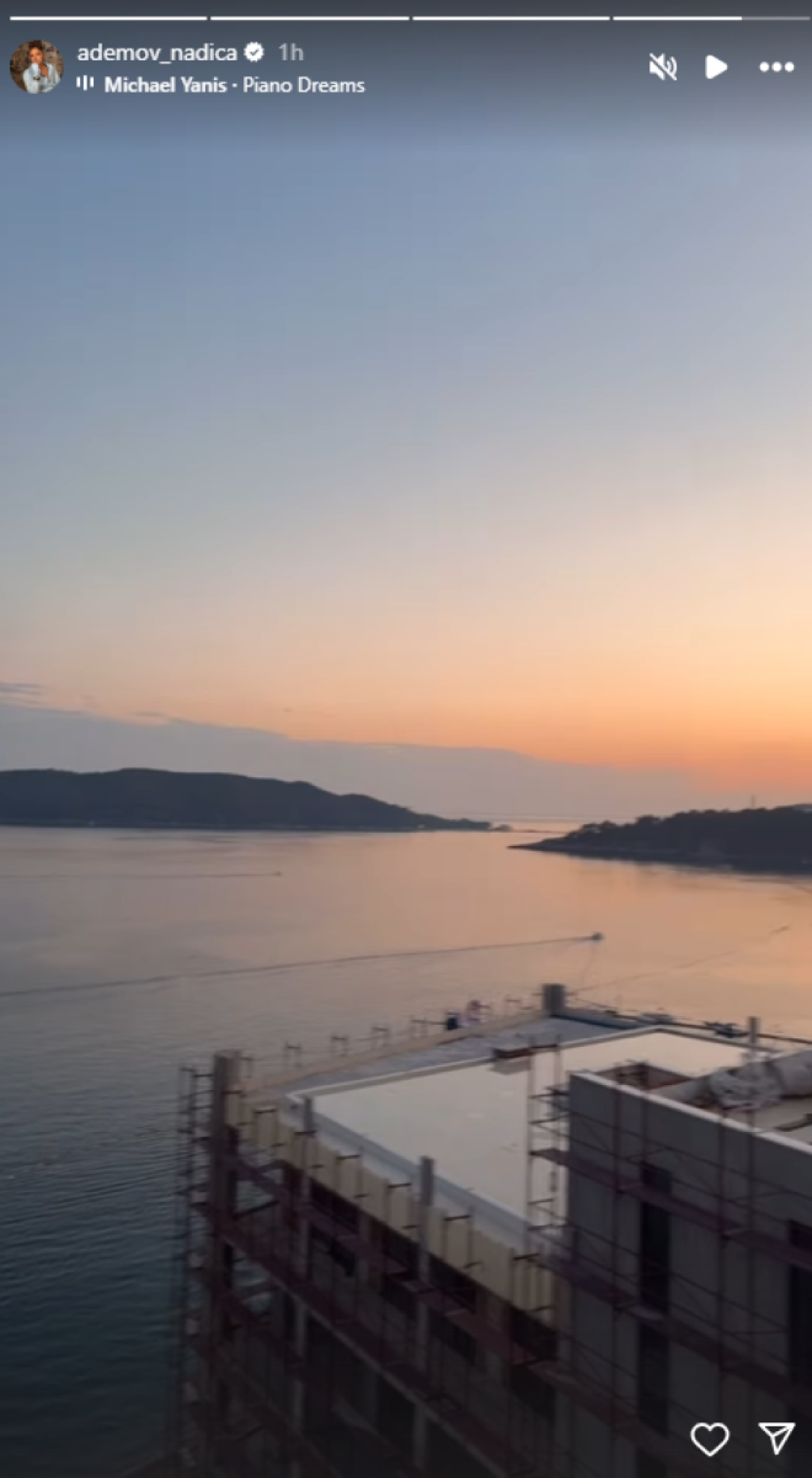 U blizini Budve Nadica Ademov kupila je luksuzni apartman sa čije terase se pruža prelep pogled. Za ovu nekretninu izdvojila je neverovatnih 300.000 evra, piše Telegraf. Dok su se deca igrala na balkonu pevačica je snimila horizont i predivan zalazak sunca, a prizor je očarao njene pratioce.