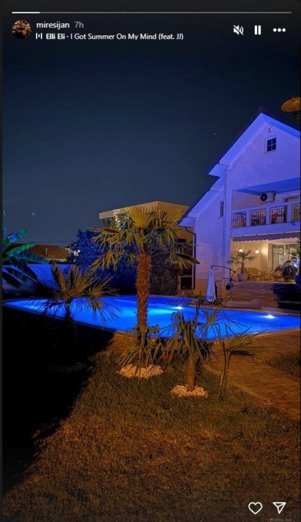 Mirko je na Instagramu podelio fotografiju iz dvorišta porodične vile, na kojoj se vidi bazen smešten u samom centru dvorišta, okružen palmama. Nema sumnje da upravo na tom mestu porodica provodi najviše vremena tokom letnjih dana.