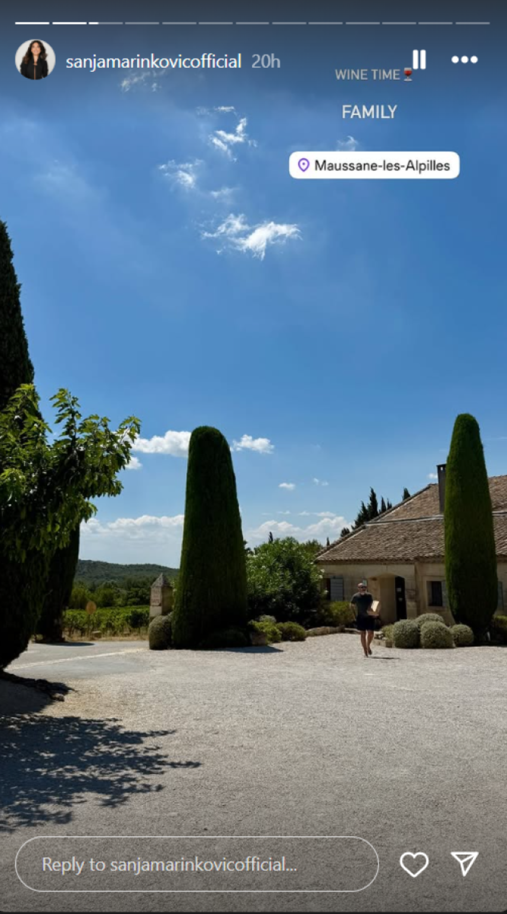 Tokom odmora Sanja se prepušta čarima lokalne kuhinje i uživa u vrhunskim francuskim vinima, a posebno joj prija što sve deli s najbližima.