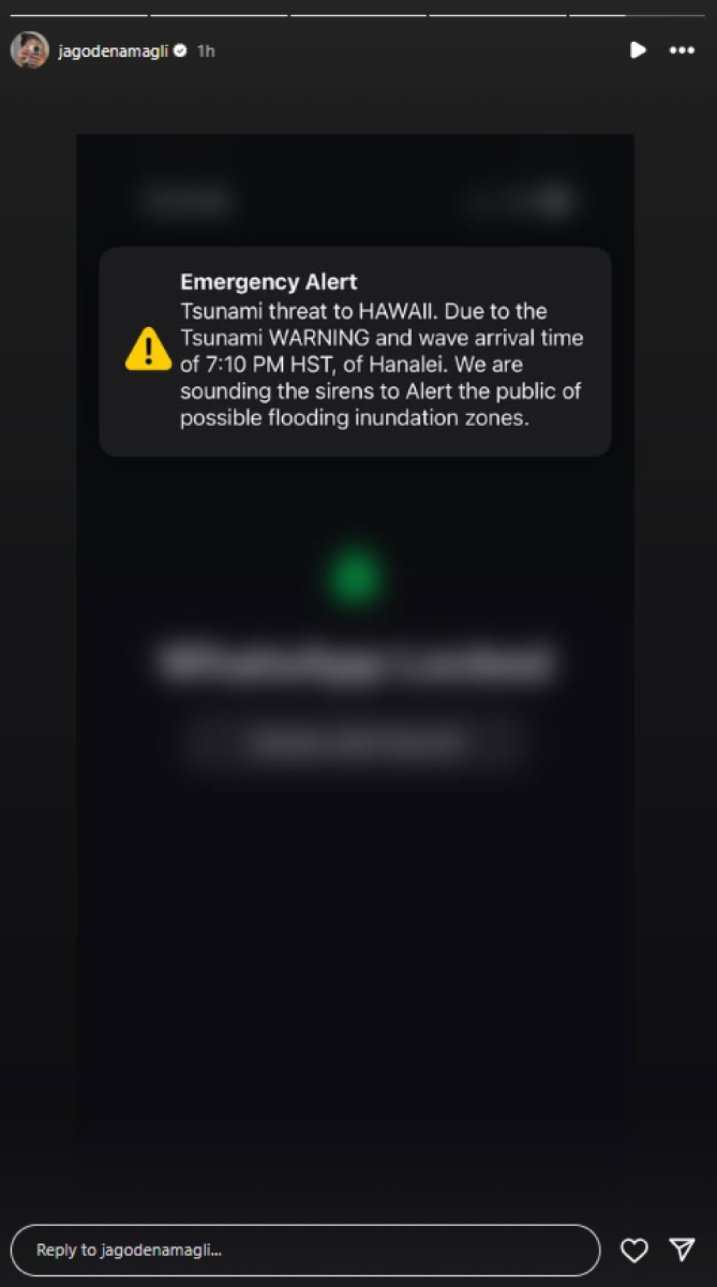 Glumici Jelisaveti Orašanin idiličan odmor na Havajima prekinulo je dramatično upozorenje na cunami koji preti ovoj ostrvskoj državi nakon jakog zemljotresa na Kamčatki.