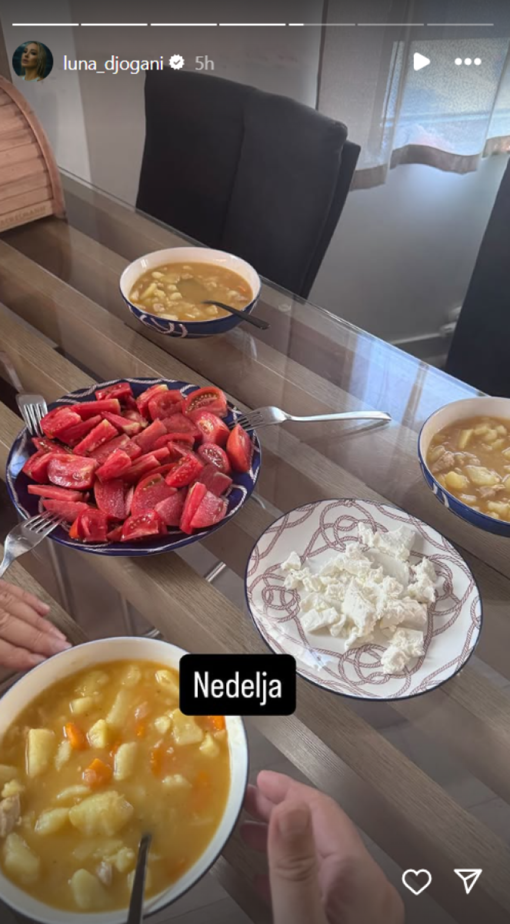 Luna, koja je nedavno otvoreno govorila o psihičkim problemima sa kojima se susrela, uslikala je trpezarijski sto, a mnogi su odmah primetili da se na njemu nalaze domaći paprikaš, tanjir sveže isečenog paradajza i mladi sir.