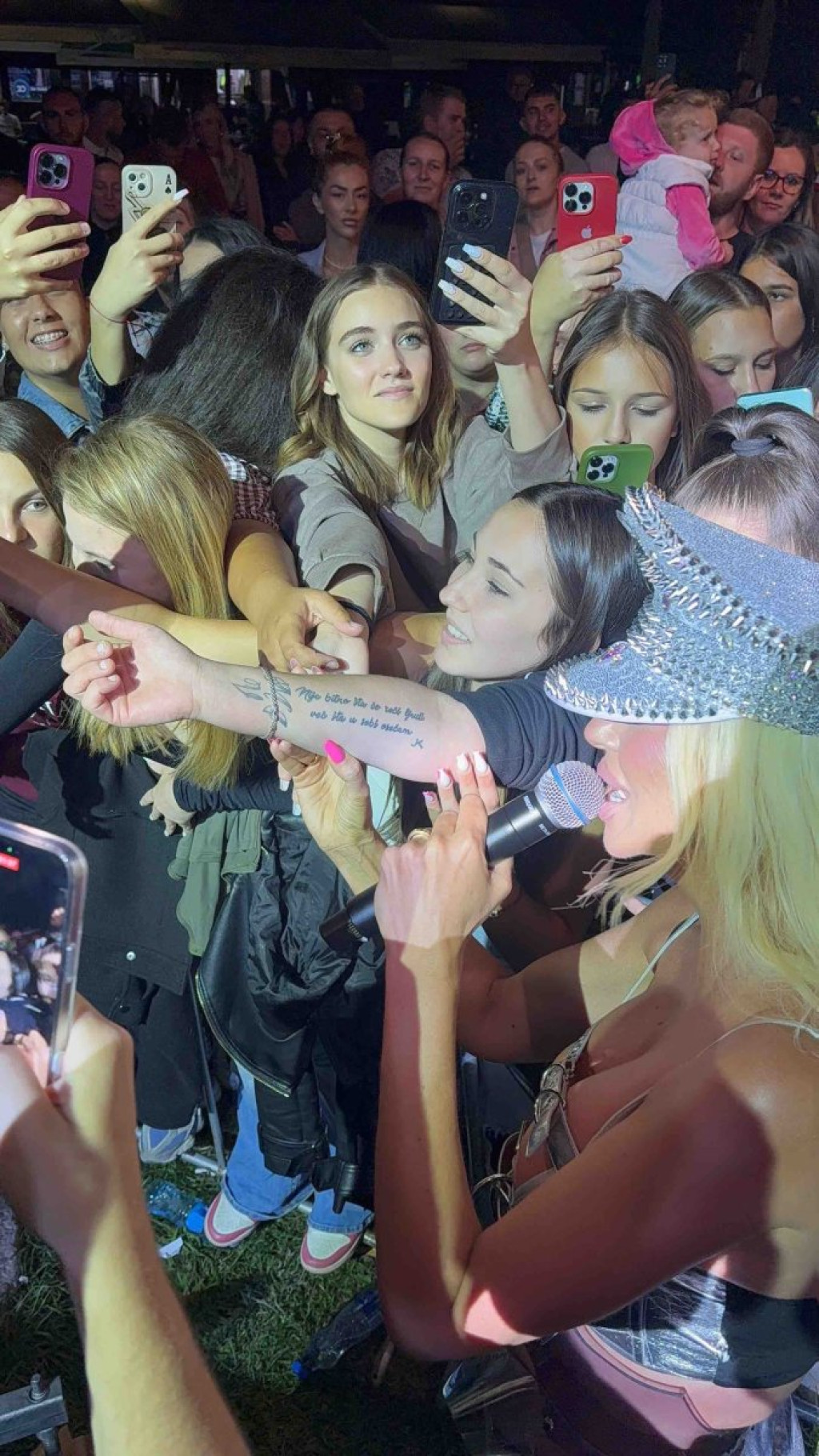 U jednom trenutku, diva je sišla s bine među fanove i zajedno sa njima zapevala nekoliko svojih najvećih hitova. Tada joj je prišla devojka i pružila ruku, pokazujući tetovirane reči: "Nije bitno šta će reći ljudi, već šta u sebi osećam", koje je Jelena otpevala još davne 1997. godine.