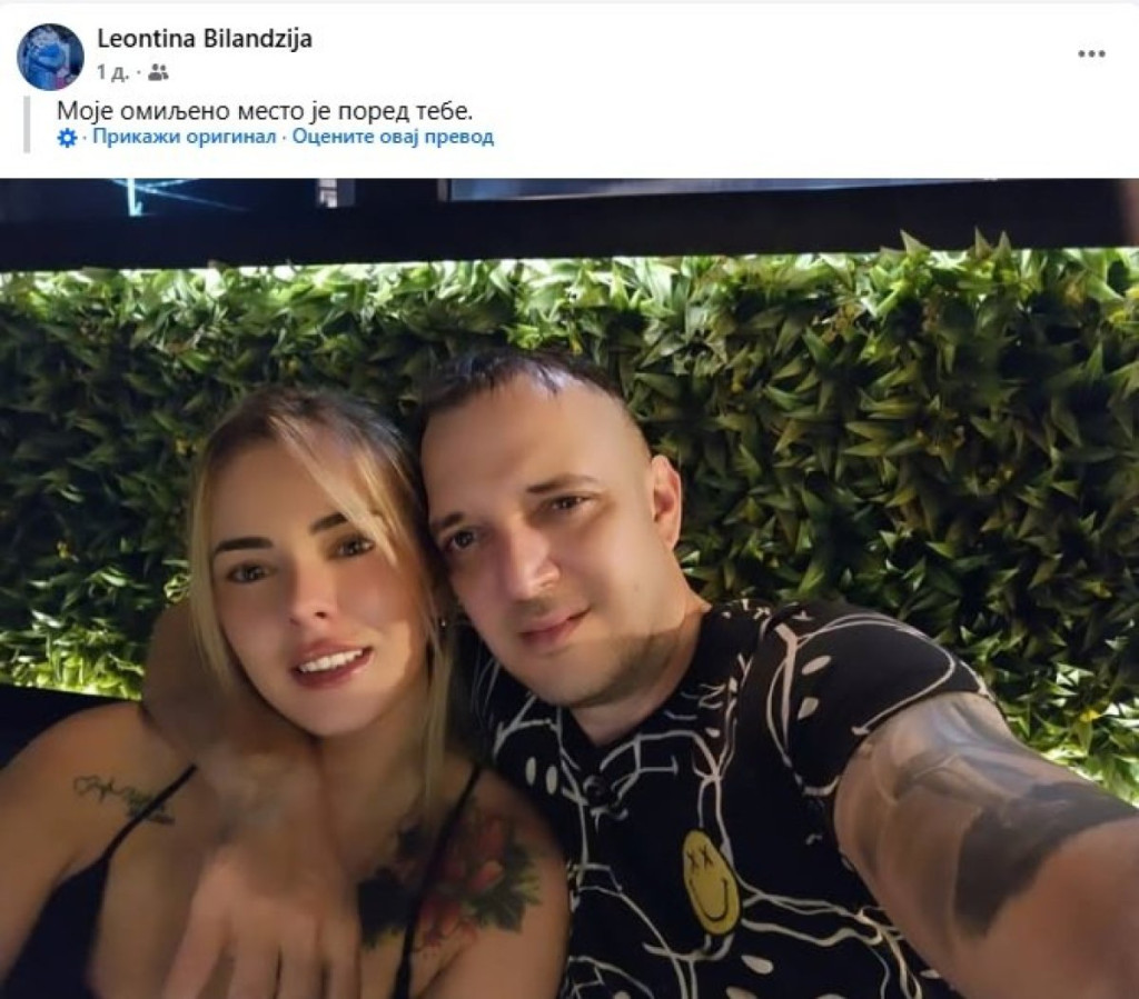 "Moje omiljeno mesto je pored tebe", napisala je Leontina Bilandžija na svom profilu, uz fotografije gde su njih dvoje zagrljeni.