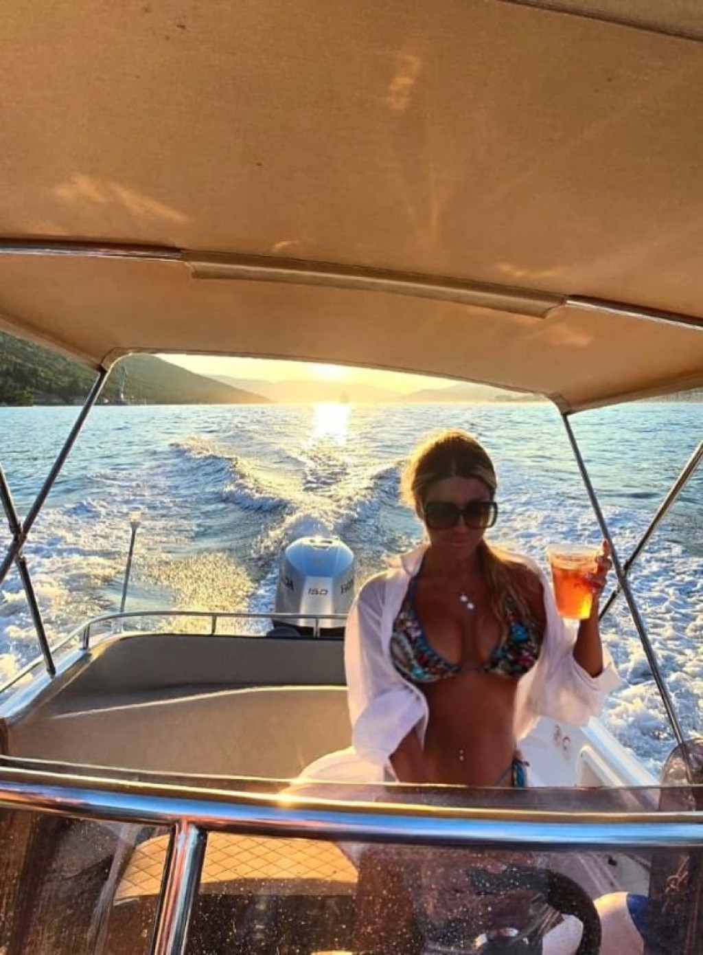 Voditeljka Ivana Šopić je na svom profilu podelila niz fotografija i snimaka na kojima se vidi kako se provodi na jahti, dok u ruci sve vreme drži času u kojoj je neko alkoholno piće.