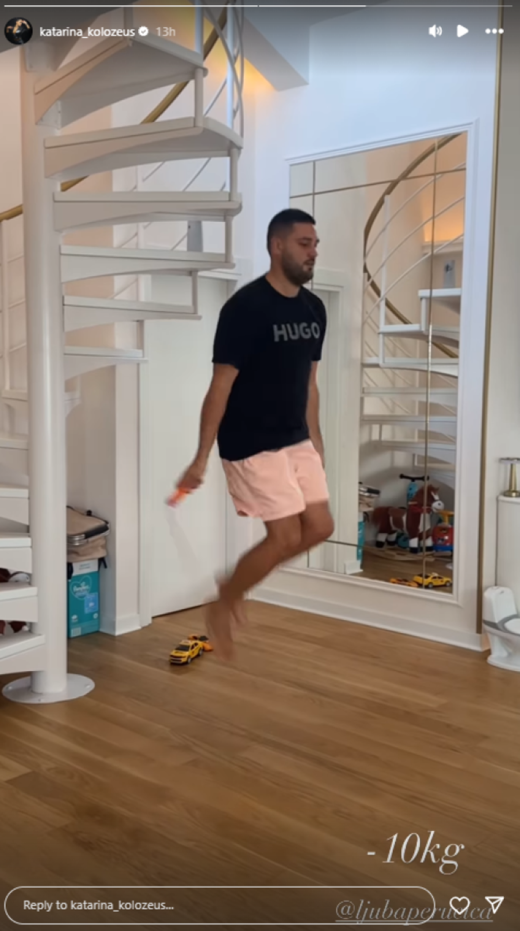Pevačeva supruga Katarina Kolozeus, koja se porodila sredinom maja, snimila je kako pevač trenira kod kuće. Ona je pokazala da Ljuba revnosno radi vežbe i kada nema vremena da ode u teretanu.