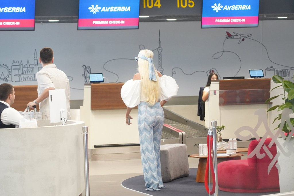 Na aerodrom je stigla u luksuznom crnom "mercedesu", u društvu menadžera Zorana Birtaševića, od kojeg se ne odvaja.