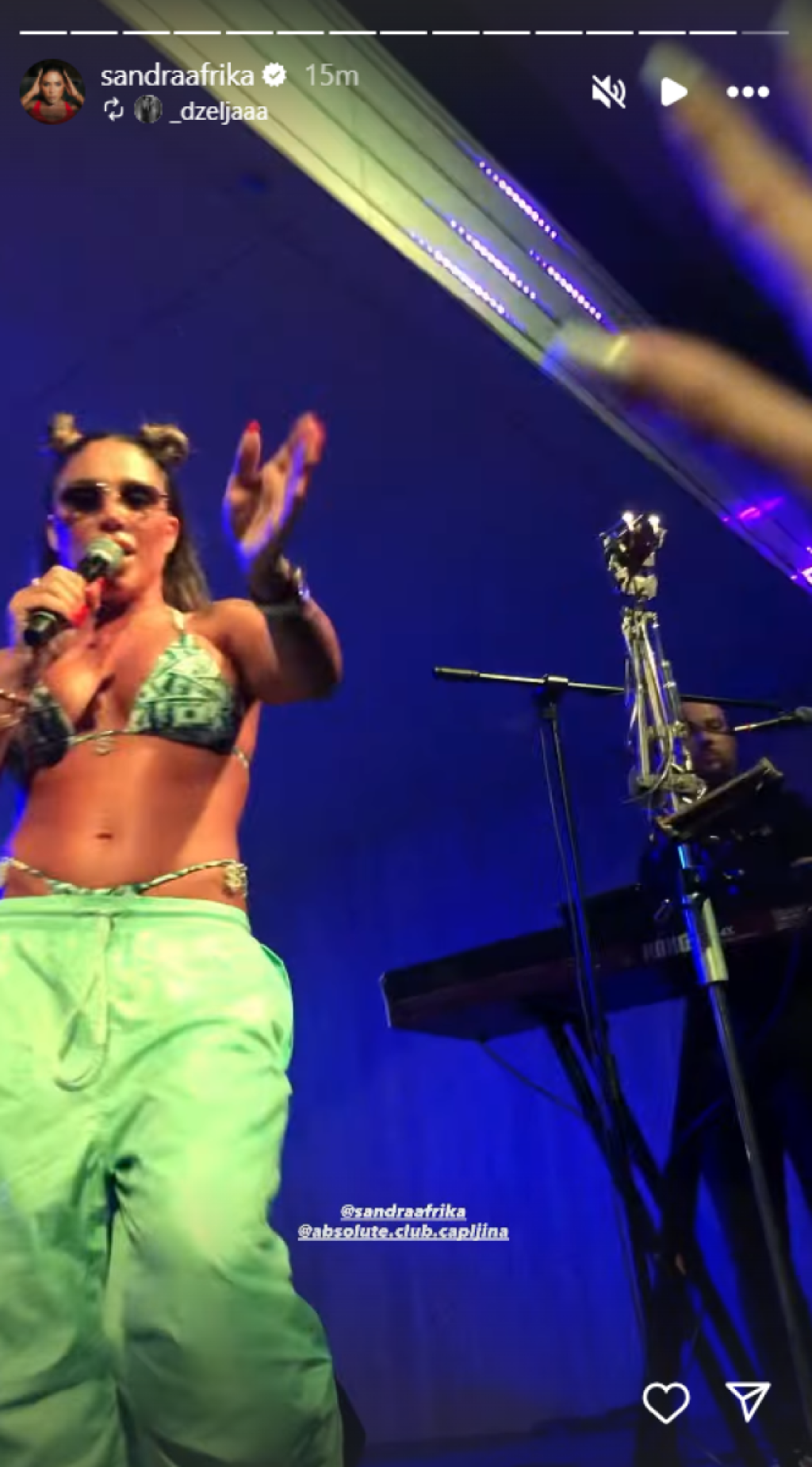 Sandra Afrika zapalila je publiku u Budvi svojim vrelim nastupom i još vrelijim stajlingom. Pevačica je u kupaćem kostimu došla u diskoteku a, umesto štikli, nosila je patike.