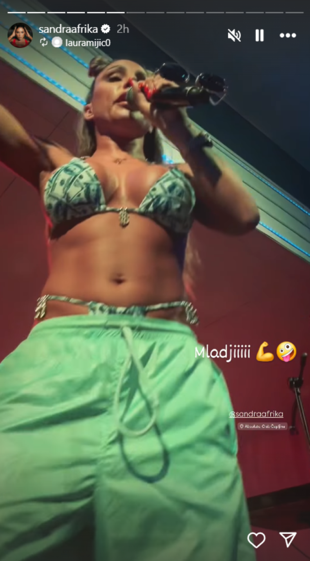 Pevačica Sandra Afrika pojavila se sinoć na nastupu u jednom noćnom klubu na crnogorskom primorju u bikiniju koji je izazvao pravu pometnju među publikom.