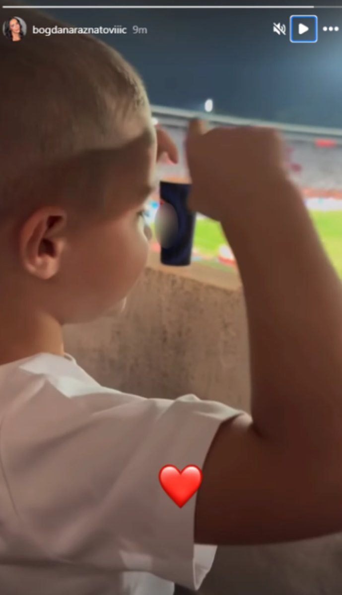 Bogdana je na svom Instagram profilu podelila snimak na kom se vidi kako je mali Željko presrećan jer je na utakmici.