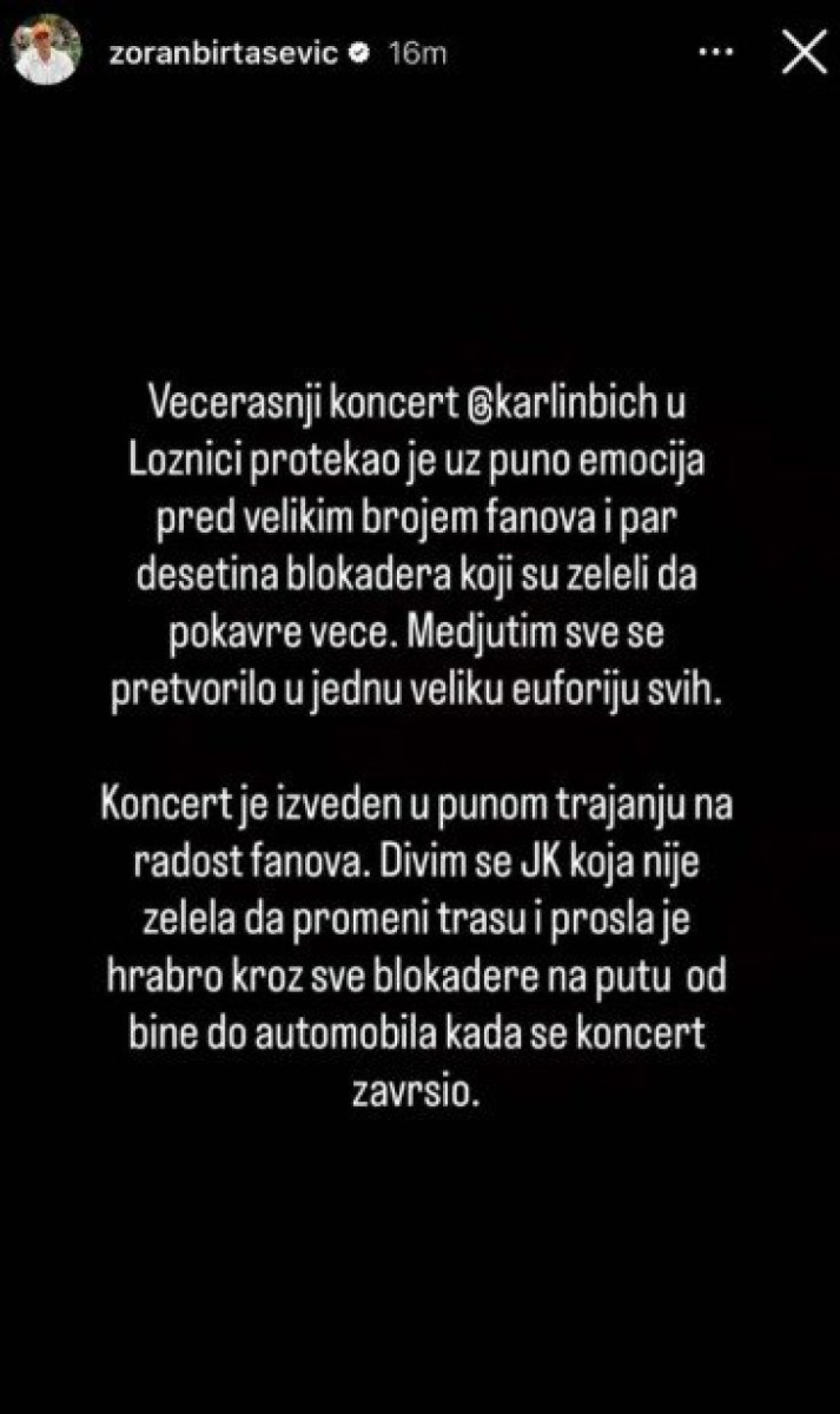 Nakon stravičnog napada Karleušin menadžer Zoran Birtašević uputio jasnu poruku putem svog Instagram profila.