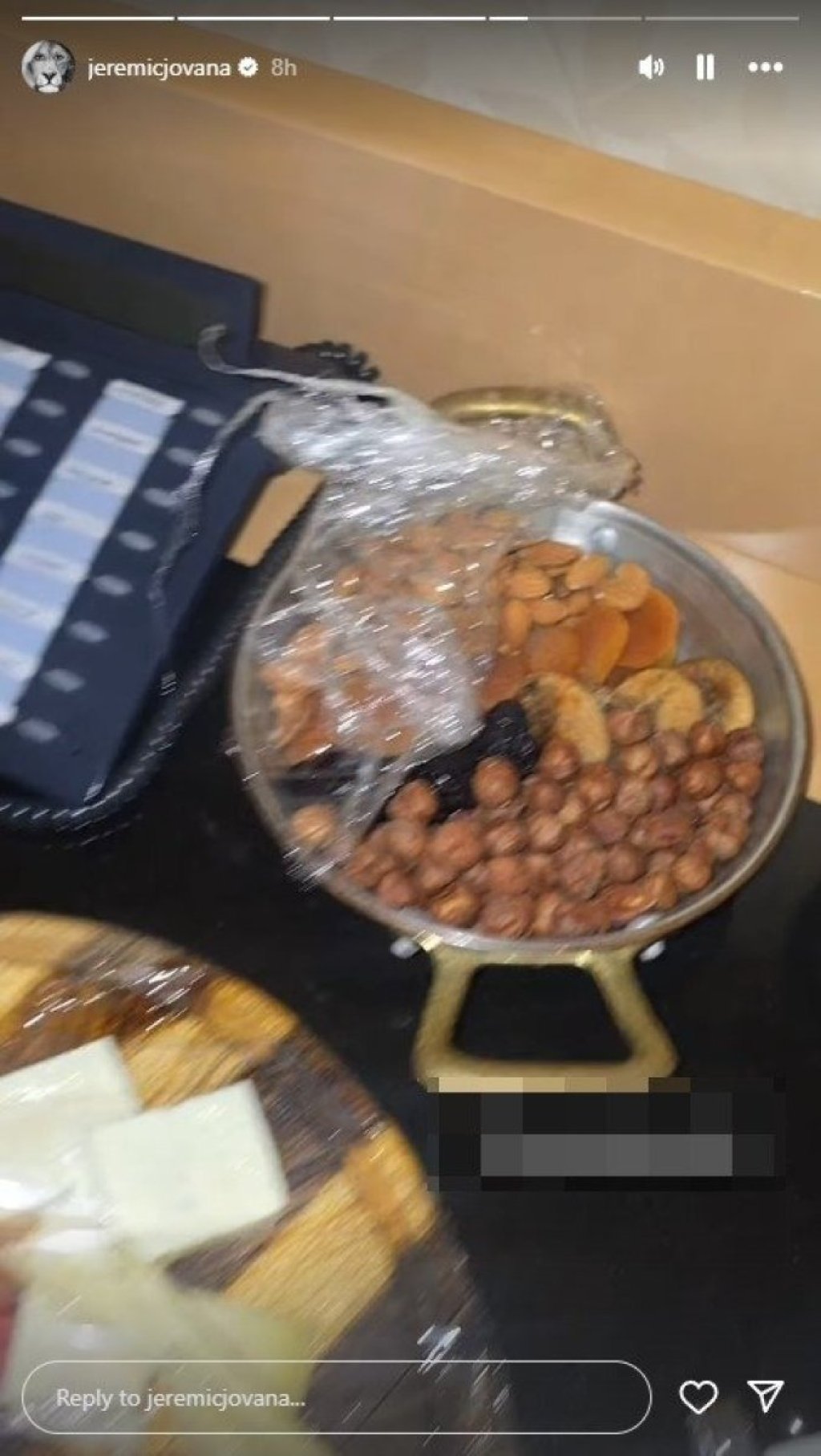 Jeremićka je uživala sa ćerkom na plaži, a po povrtaku u hotelsku sobu na stolu su ih sačekale razne đakonije. Osim predjela i voća, osoblje hotela za voditeljku je donelo i orašaste plodove.