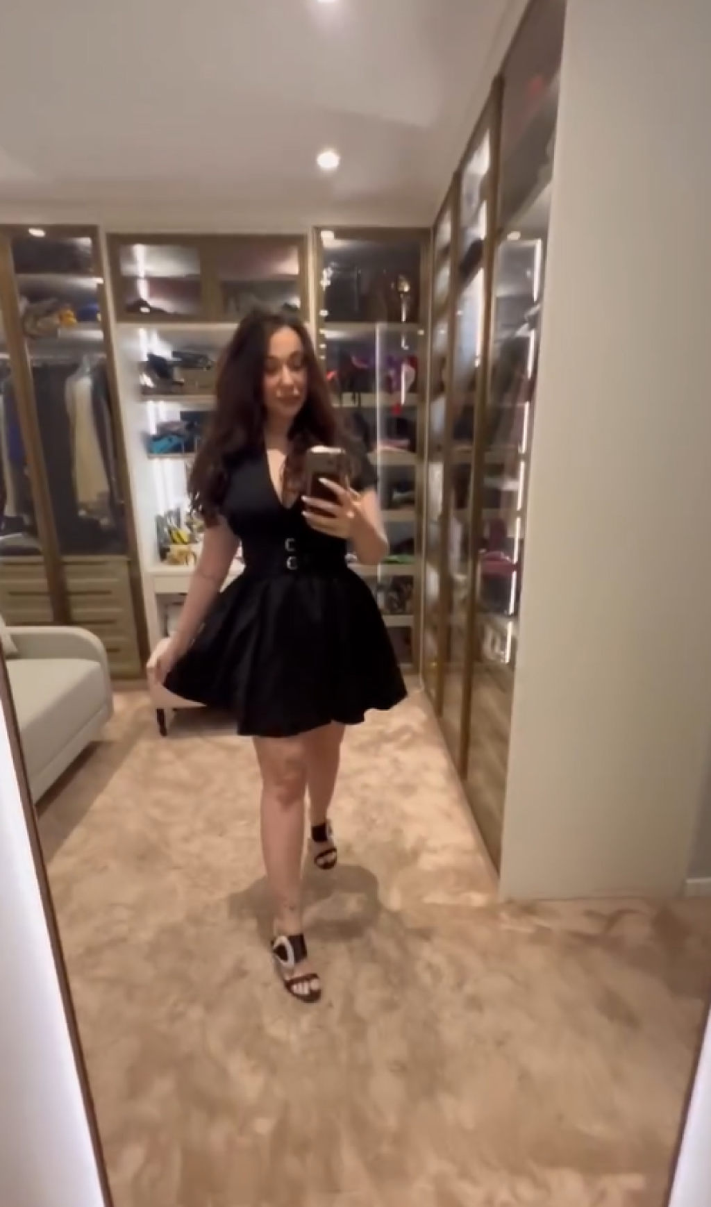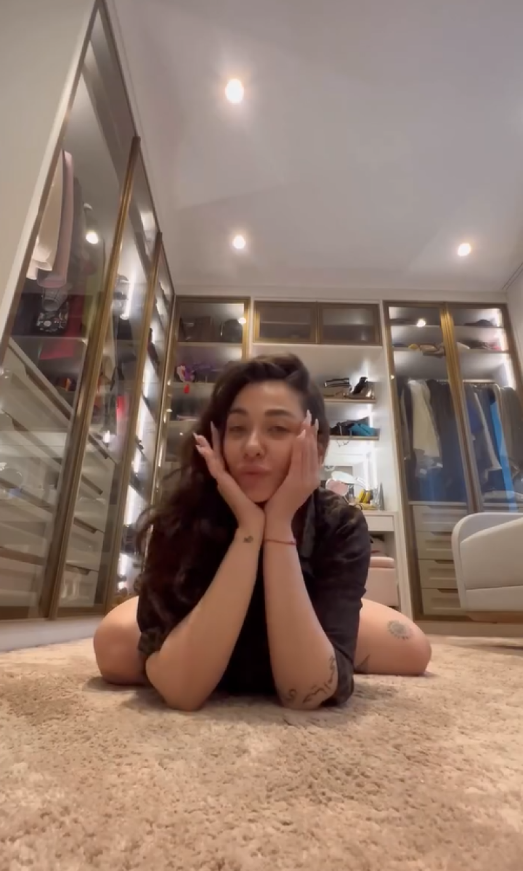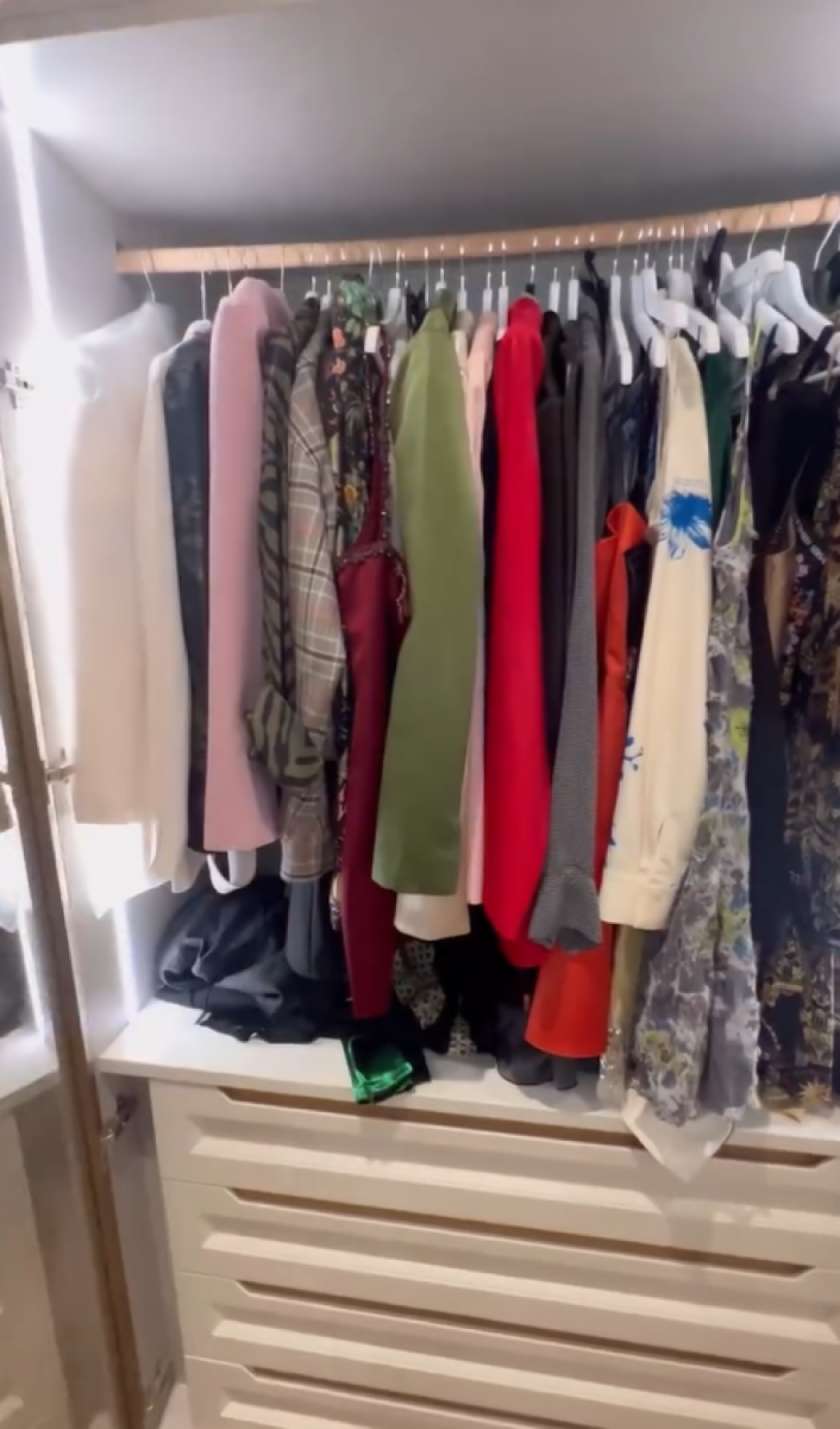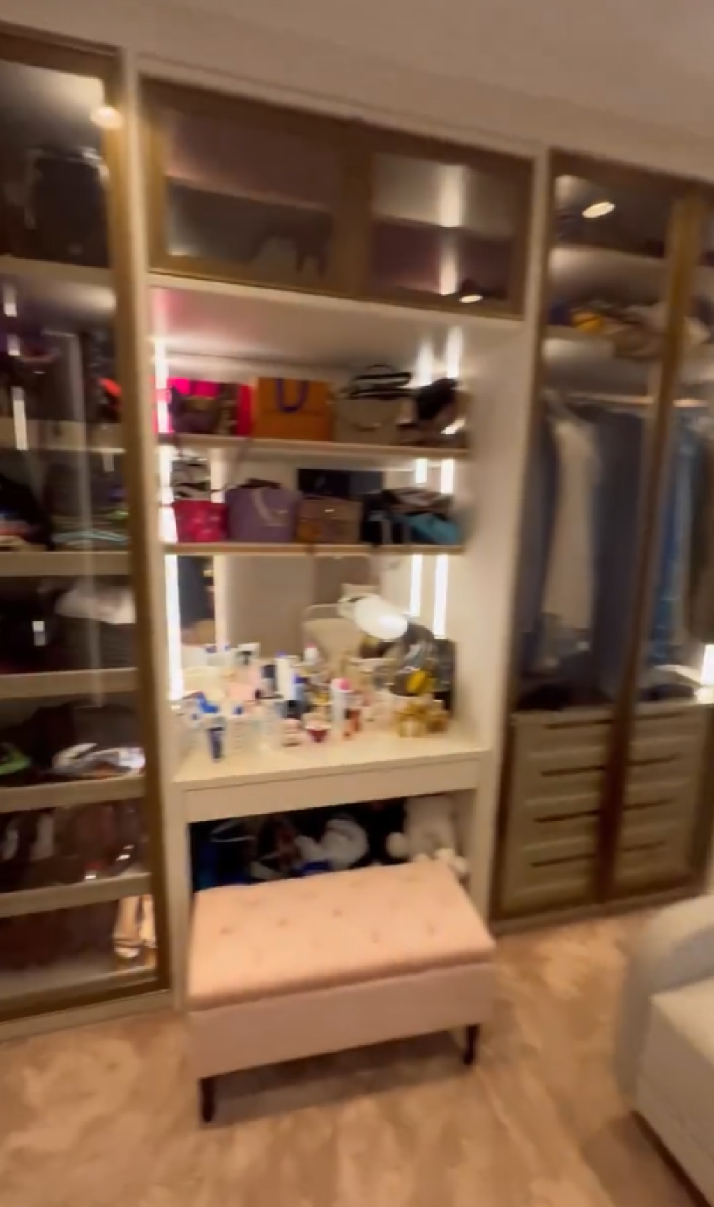 Pevačica u garderoberu, koji je opremljen u bež tonovima, provodi najviše vremena. Tu smišlja šta će da obuče za nastupe, emisije, pa i kad ide na piće sa drugaricama. Tu se neguje, šminka i najčešće snima za društvene mreže.