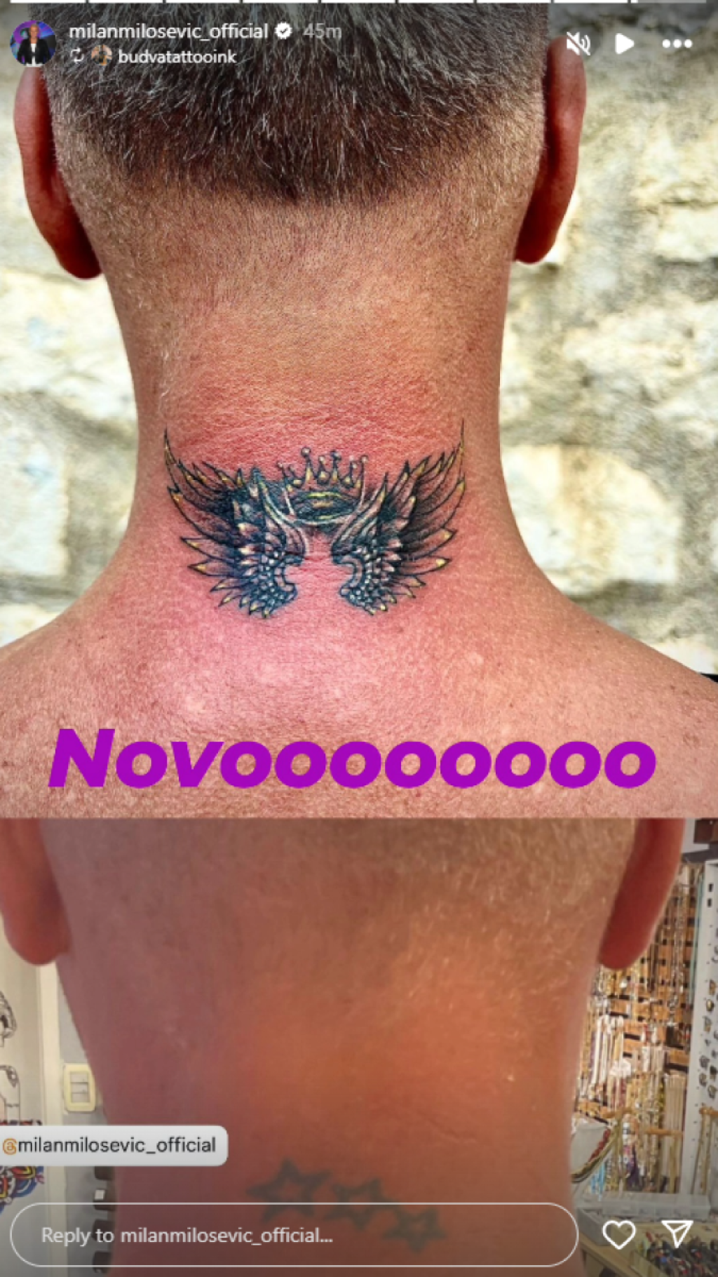 Milan Milošević odmor je iskoristio i da prepravi tetovažu koju je pre mnogo godina uradio na vratu. Čuvene zvezdice sada je prekrio simbol koji za njega ima posebno značenje.