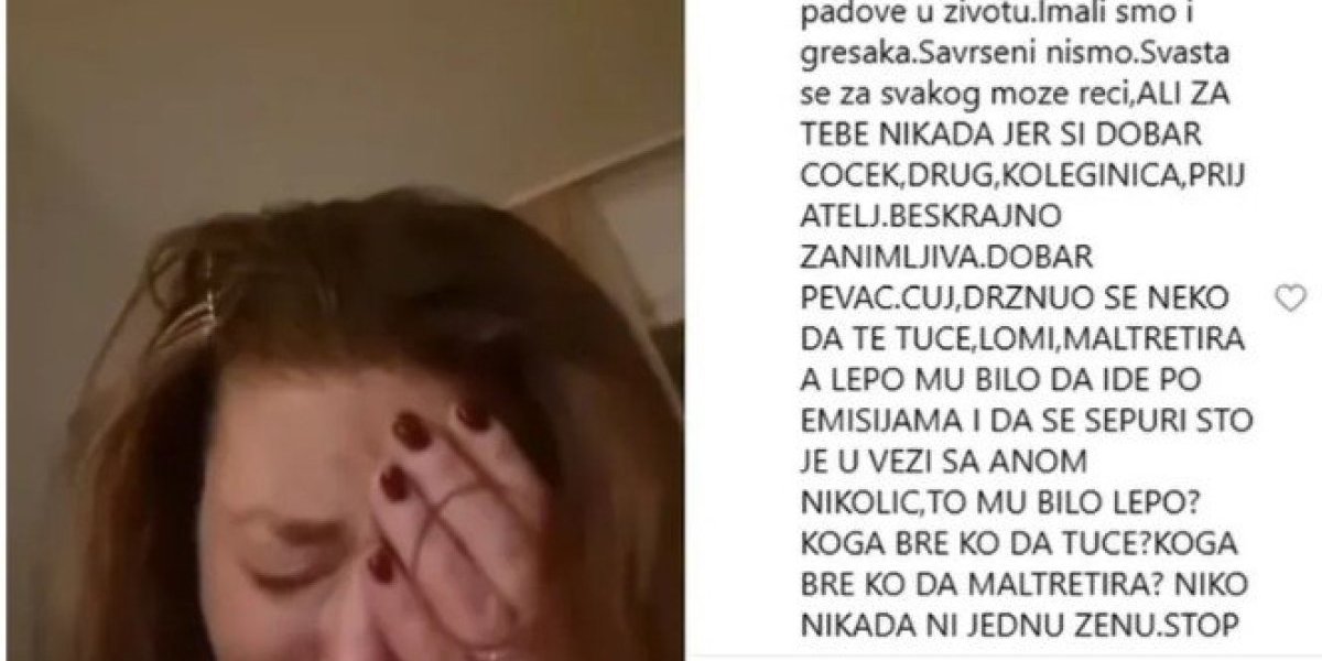 "Čuj, drznuo se neko da te tuče, lomi, maltretira, a lepo mu bilo da ide po emisijama i da se hvali što je u vezi sa Anom Nikolić. Koga bre ko da tuče? Koga bre ko da maltretira? Niko nikada ni jednu ženu. STOP nasilju nad ženama".