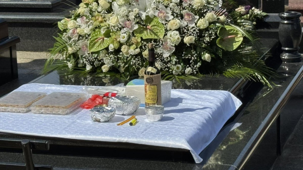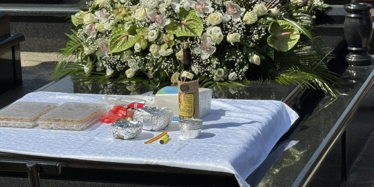 Ispod velikog mermernog spomenika sa Sašinom slikom na grob je položen venac od crvenih ruža, a na grobu je, kako običaji nalažu pripremljeno žito, vino, sveće i posluženje za dušu pokojnika.