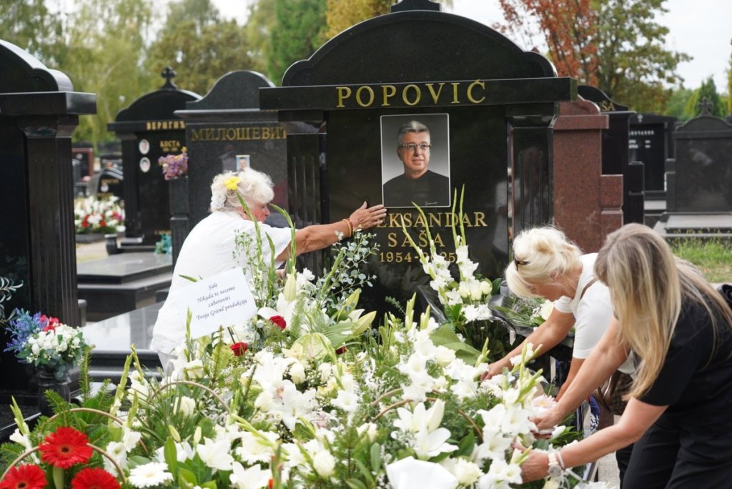 Sašina sestra i udovica nisu mogle da sakriju suze i bol, dok je ćerka Aleksandra Popović neutešno gledala očevu fotografiju.