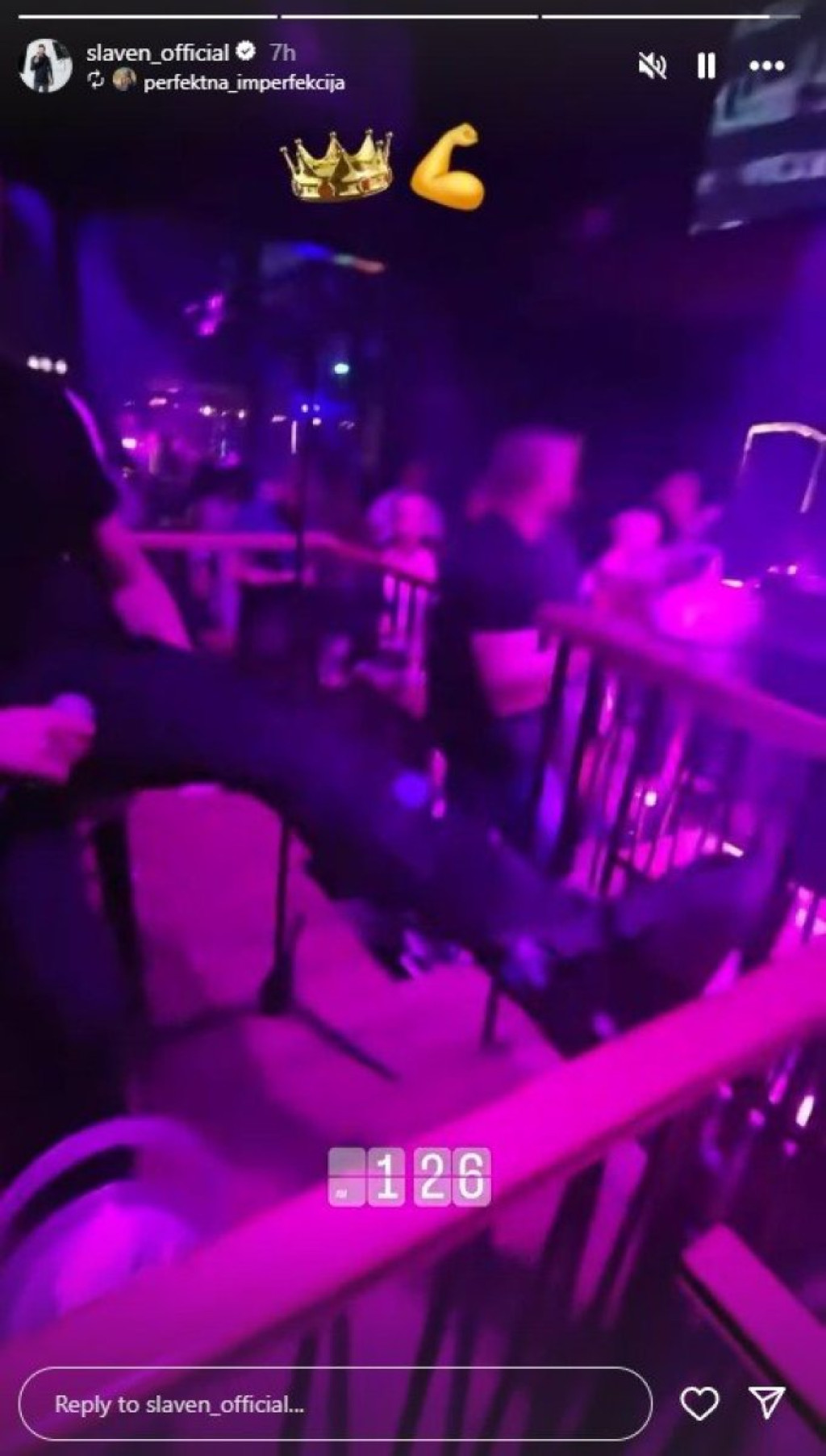 Publika nije ni primetila da Slaven ima bilo kakav problem sve dok pevač nije podigao nogu i pokazao da nosi gips. Sve vreme nastupa je sedeo na stolici, ali je napravio odličnu atmosferu.