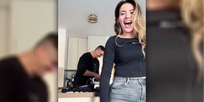 Na snimku se vidi Kristina kako igra sa osmehom na licu, dok Kristijan u pozadini pegla stvari i šokirano se smeška uz pesmu Goge Sekulić - "Nova-stara devojka".