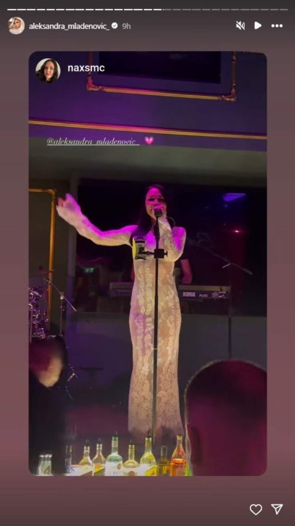 Pevačica se na bini pojavila u providnoj beloj haljini, koja ništa nije prepustila mašti. Ispod bele čipke video se veš, ali i svaki pedalj Aleksandrinog tela.