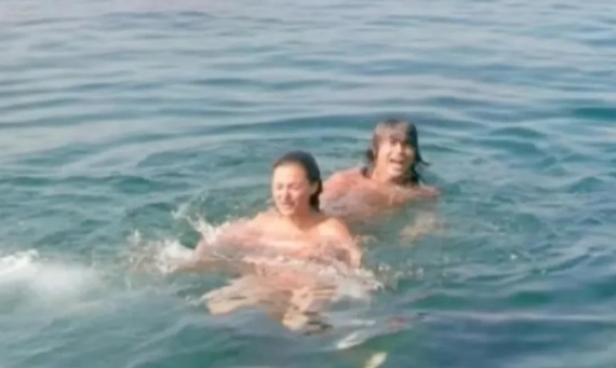 Na pomenutoj fotki se vidi kako se njih dvoje kupaju zajedno u vodi, a osmehe sa lica nisu skidali.