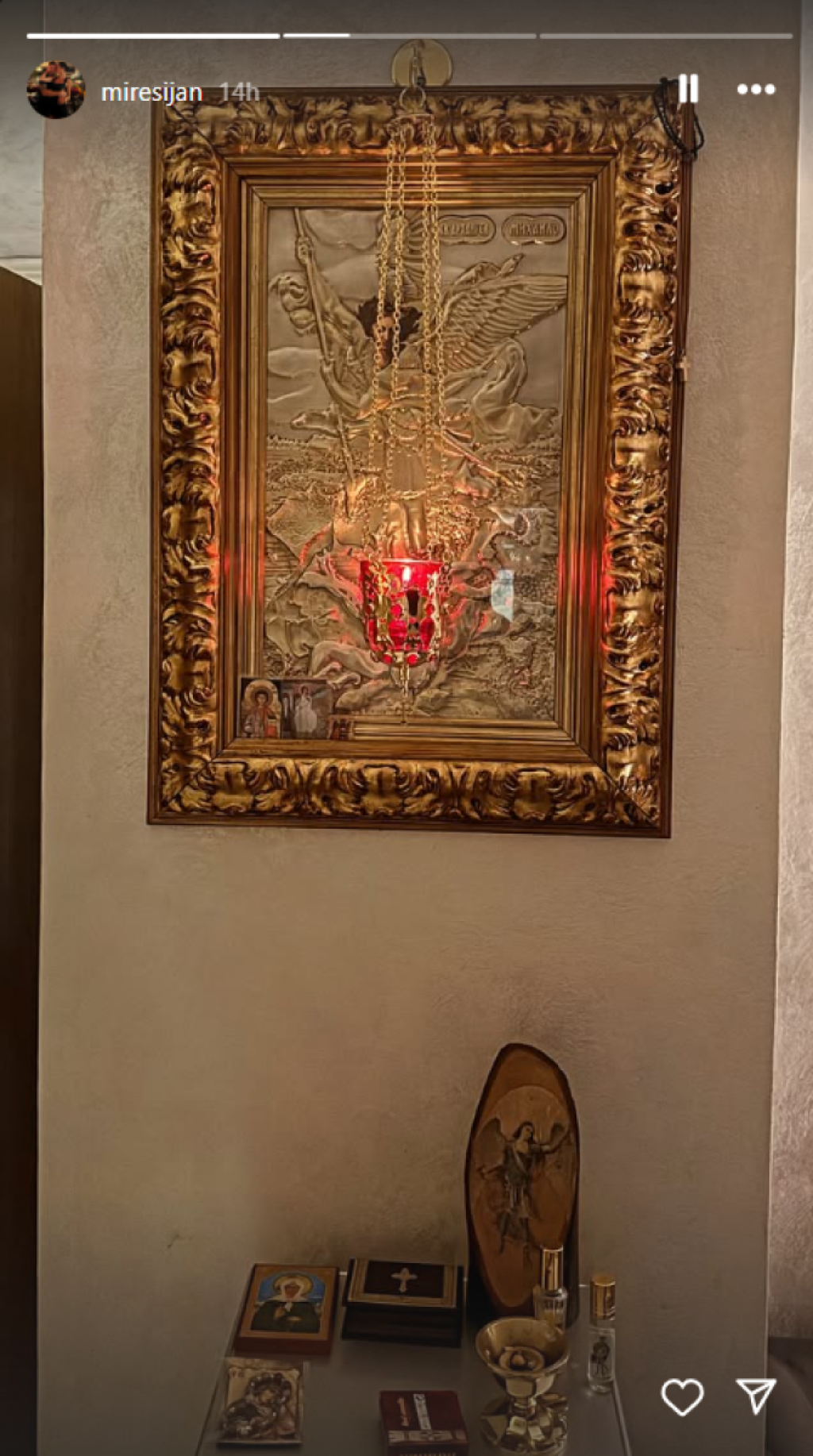 Poseban deo doma namenjen je duhovnosti - na počasnom mestu nalazi se zlatna ikona sveca čiju slavu porodica obeležava, uz upaljeno kandilo. Pored toga, Mirko ima i mali stočić na kojem su uredno poređane ikone.