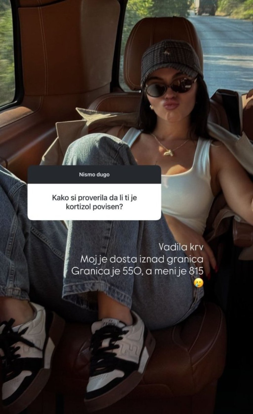 Kako je pevačica otkrila na Instagramu, lekari su joj ustanovili povišen kortizol. Poznato je da se pevačica oduvek hranila zdravo, o čemu svedoči i njena vitka linija, međutim, kako je otkrila, sada posebno mora voditi računa o ishrani.
