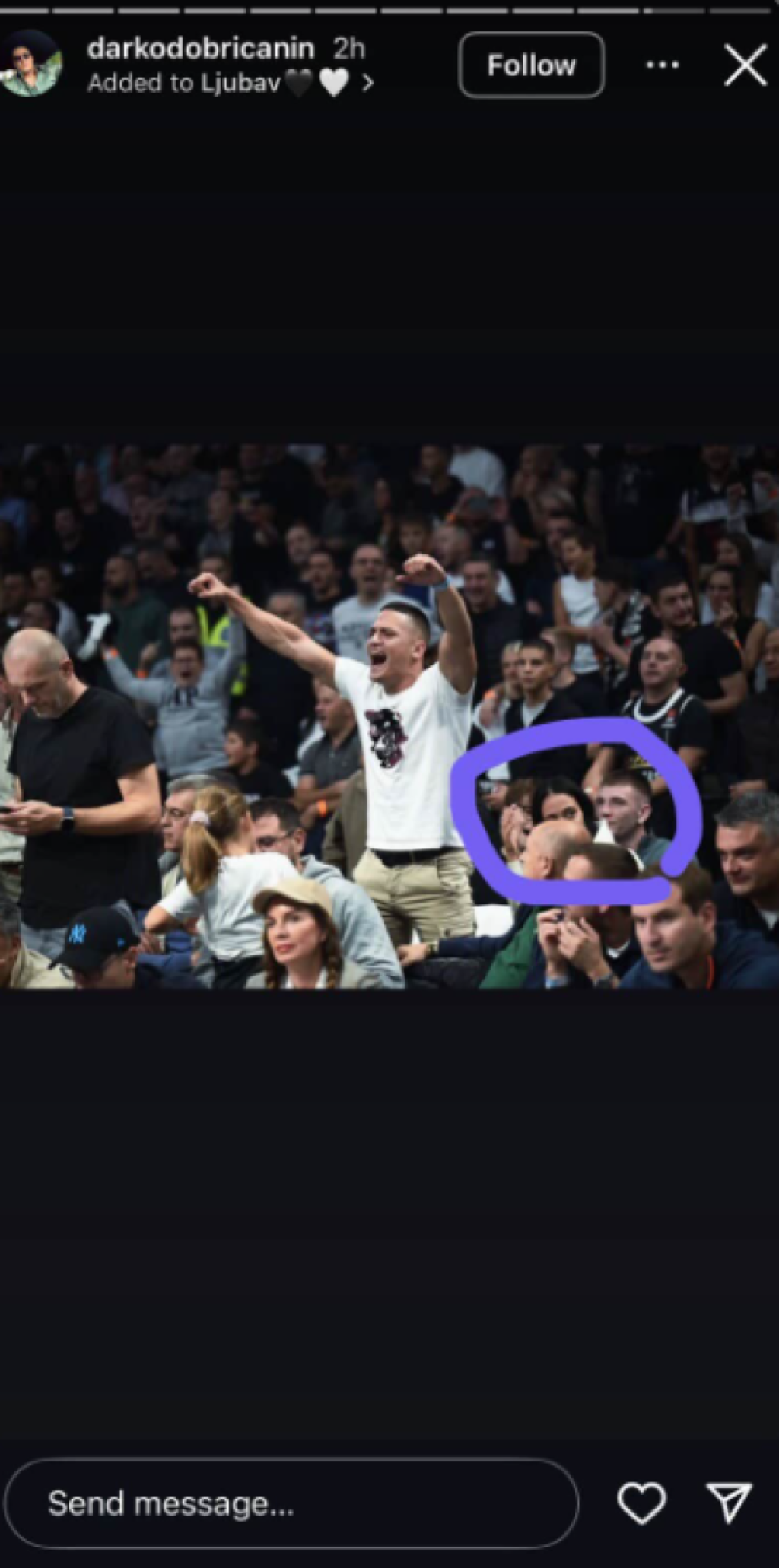 Naime, na društvenim mrežama Mladenovićkin bivši podelio je fotografiju sa utakmice, a u pozadini se vidi mlada muzička zvezda. Iako se Darko i Mahrina svim silama trude sve da zataškaju glasine o njihovoj vezi ne prestaju da se šire.