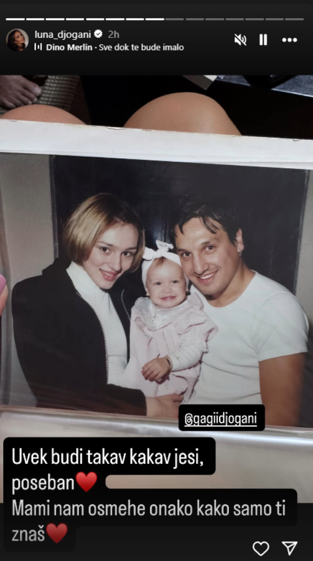 "Srećan rođendan najslađem, najsmešnijem i najboljem tati na svetu. Uvek budi takav kakav jesi - poseban. Mami nam osmehe onako kako samo ti znaš. Da si nam živ i zdrav, još puno, puno godina! Volim te," napisala je Luna.