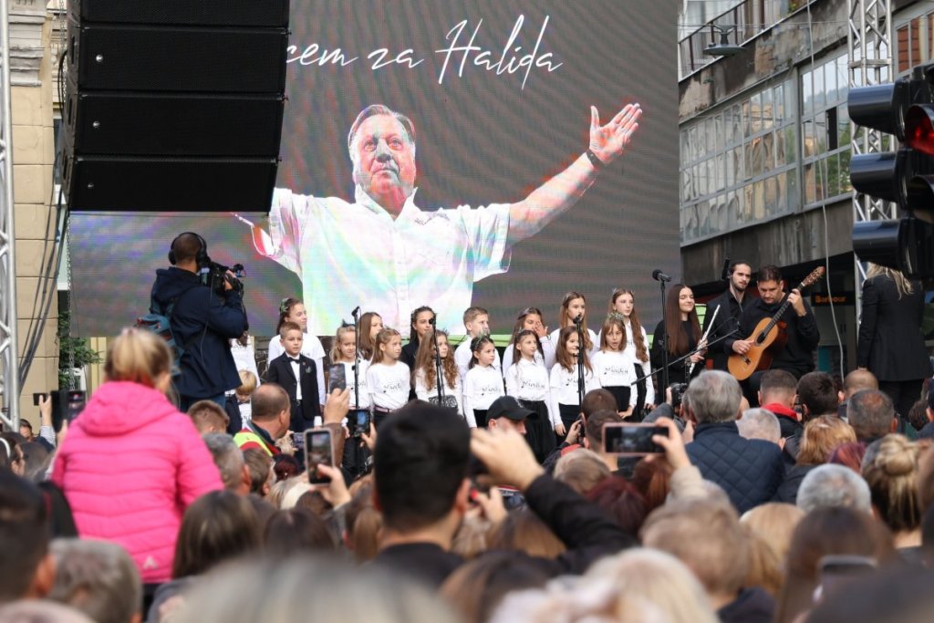 U jednom momentu na bini postavljenoj ispred Večne vatre izašao je Halidov sin Dino sa svojom decom.