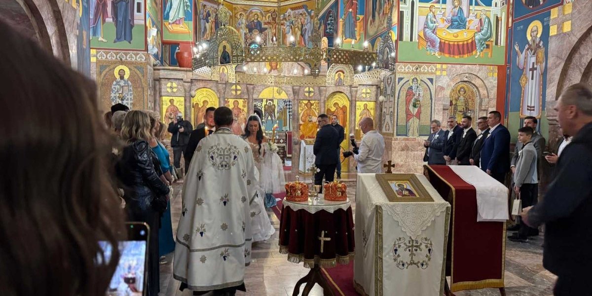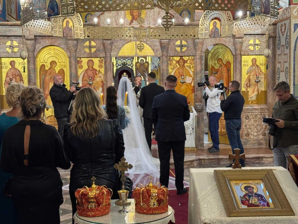 Najbliži članovi porodice, prijatelji i kumovi prisustvovali su crkvenom venčanju.